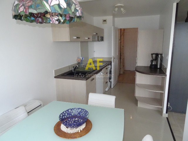 Très bel appartement 2 pièces situé en front de mer de St Raphael : entrée, séjour avec canapé lit et coin repas donnant sur terrasse, cuisine équipée, chambre avec lit en 160 et accès sur balcon privé, salle de bains, WC avec lave mains. Classé meublé tourisme 3*** pour 4 personnes - Garage en sous sol