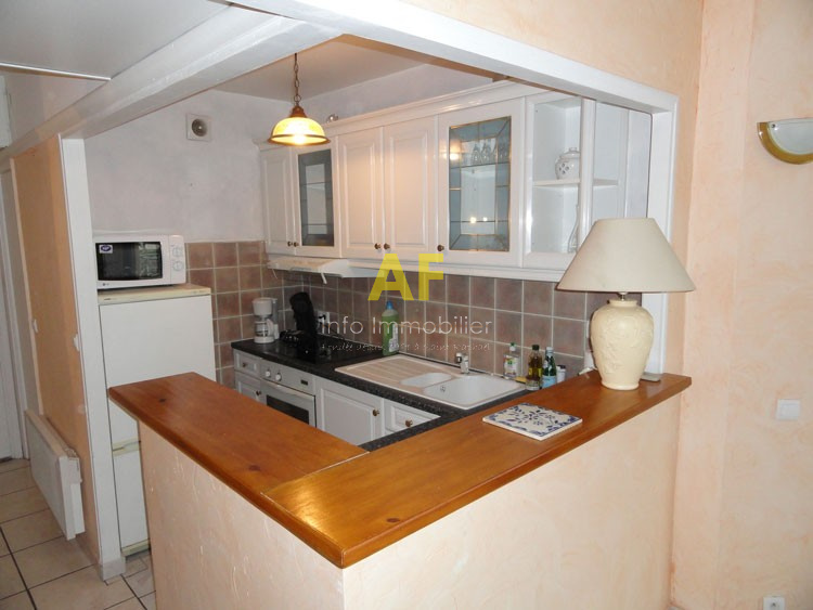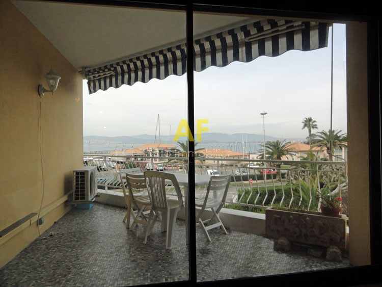 Joli studio+cabine dans résidence en front de mer, proche plages et commerces. Entrée, séjour avec cuisine américaine équipée, cabine, salle d'eau, WC indépendant, terrasse. Vue mer et port.