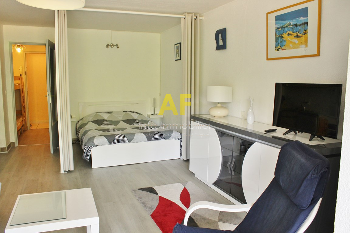Studio tout confort dans résidence en bord de mer, à deux pas des commerces du Port Santa Lucia. Entrée, séjour avec coin cuisine équipé ouvrant sur terrasse, coin nuit, salle de bains avec WC. Classé meublé tourisme 2** pour 4 personnes. Parking privatif.