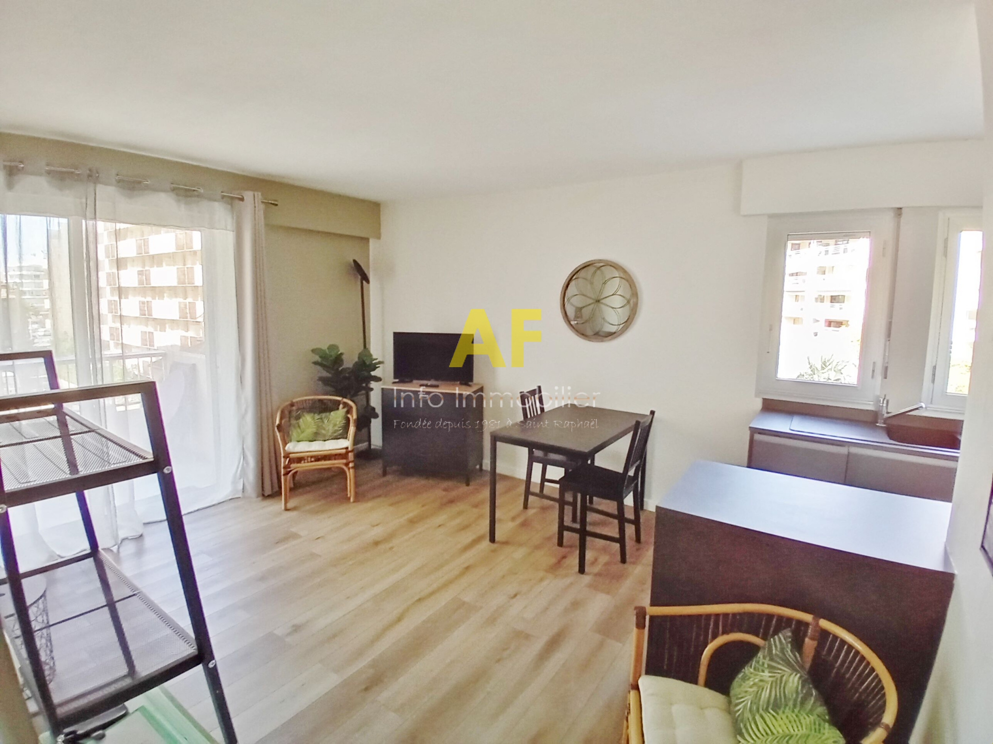 Saint-Raphaël (83700)SAINT RAPHAEL - TRIANGLE D'OR. Dans résidence recherchée située face aux plages, à deux pas du centre ville, des commerces et de la gare à pied, agréable Studio avec vue mer de côté rénové avec goût et composé : une entrée avec placard, séjour avec cuisine américaine ouvrant sur une terrasse, salle d'eau avec wc. Vendu avec une place de parking en sous sol + cave. Copropriété de 251 lots totaux dont 85 lots principaux d'habitation. Charges courantes prévisionnelles 918 € / an