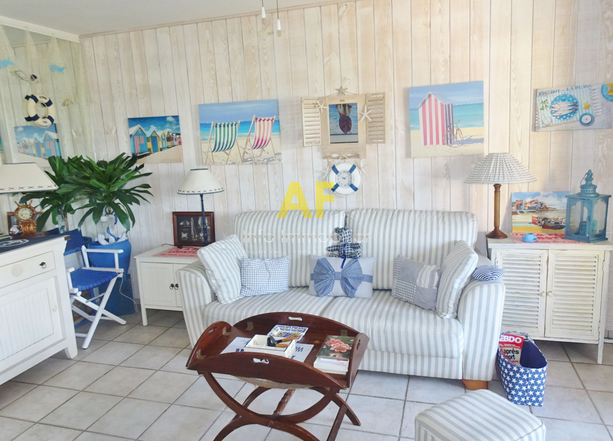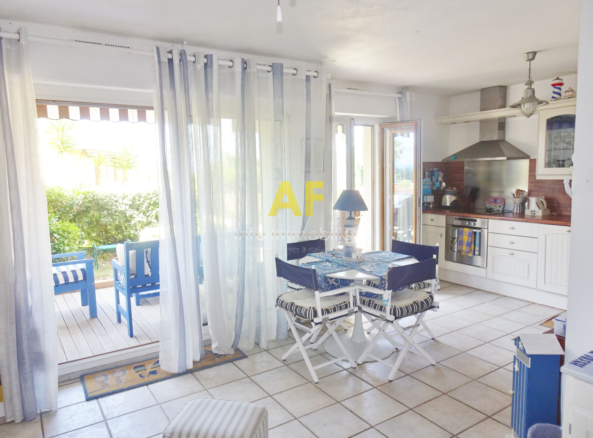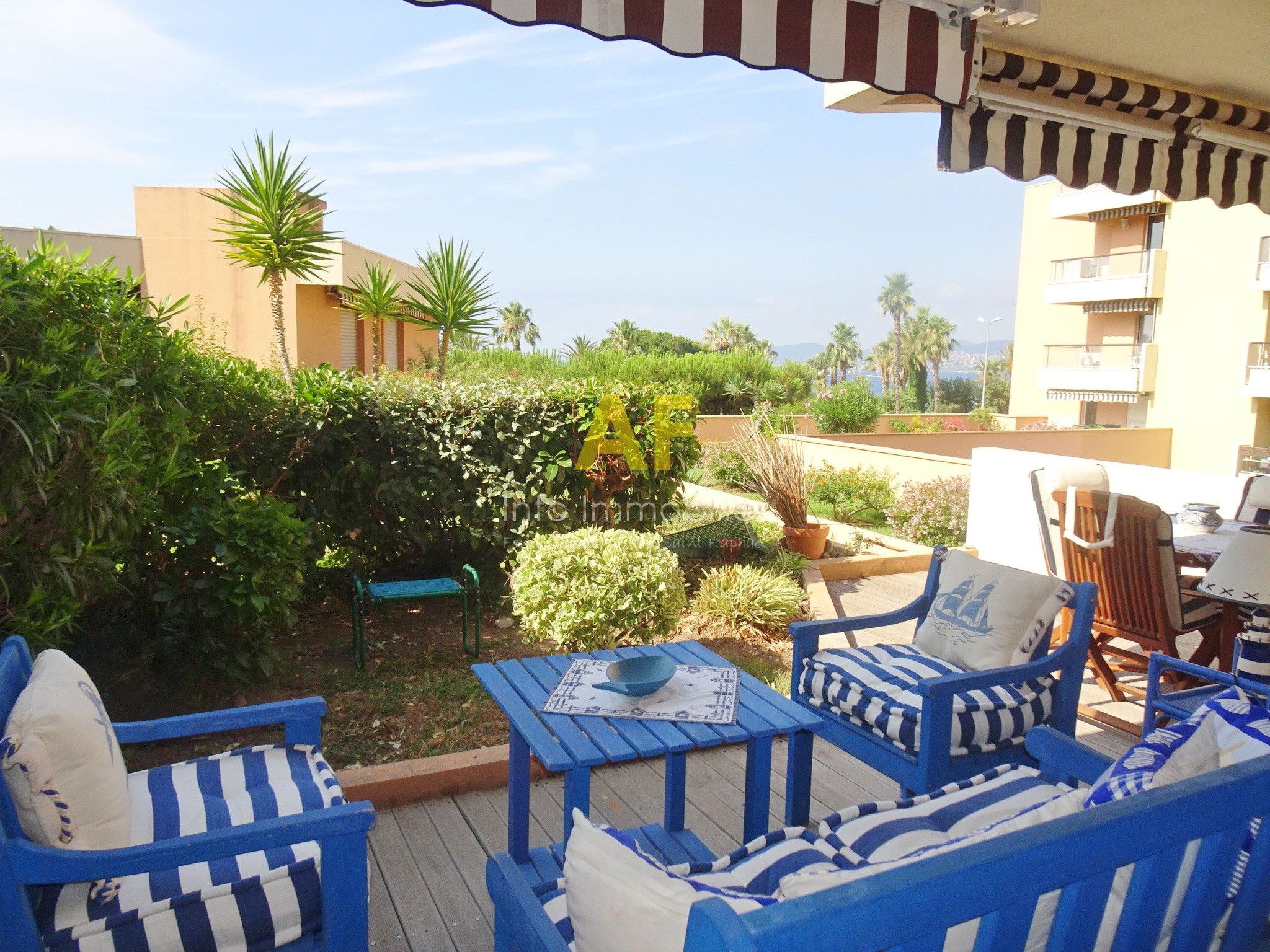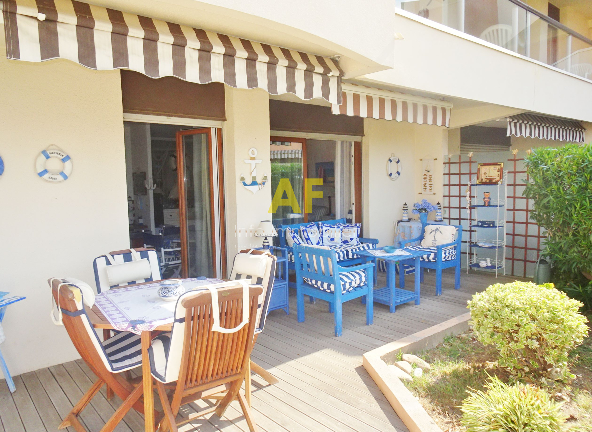 Saint-Raphaël (83700)SAINT-RAPHAËL - Triangle d'Or, dans une résidence sécurisée de bord de mer avec piscine, à deux pas du centre-ville et de toutes les commodités à pied (gare, commerces, plages), nous vous proposons un appartement de type 2 pièces au rez de jardin de 49 m² face à la mer + terrasse exposition SUD. Il se compose d'un hall d'entrée avec placard, wc, salle de bains, séjour et cuisine ouverte FACE A LA MER s'ouvrant sur une très belle terrasse + jardin, chambre avec placard. Il est vendu avec un parking en sous-sol + une cave. Copropriété de 613 lots (y compris caves et stationnements) dont 192 lots principaux d'habitation. Charges courantes annuelles : 1260 €.