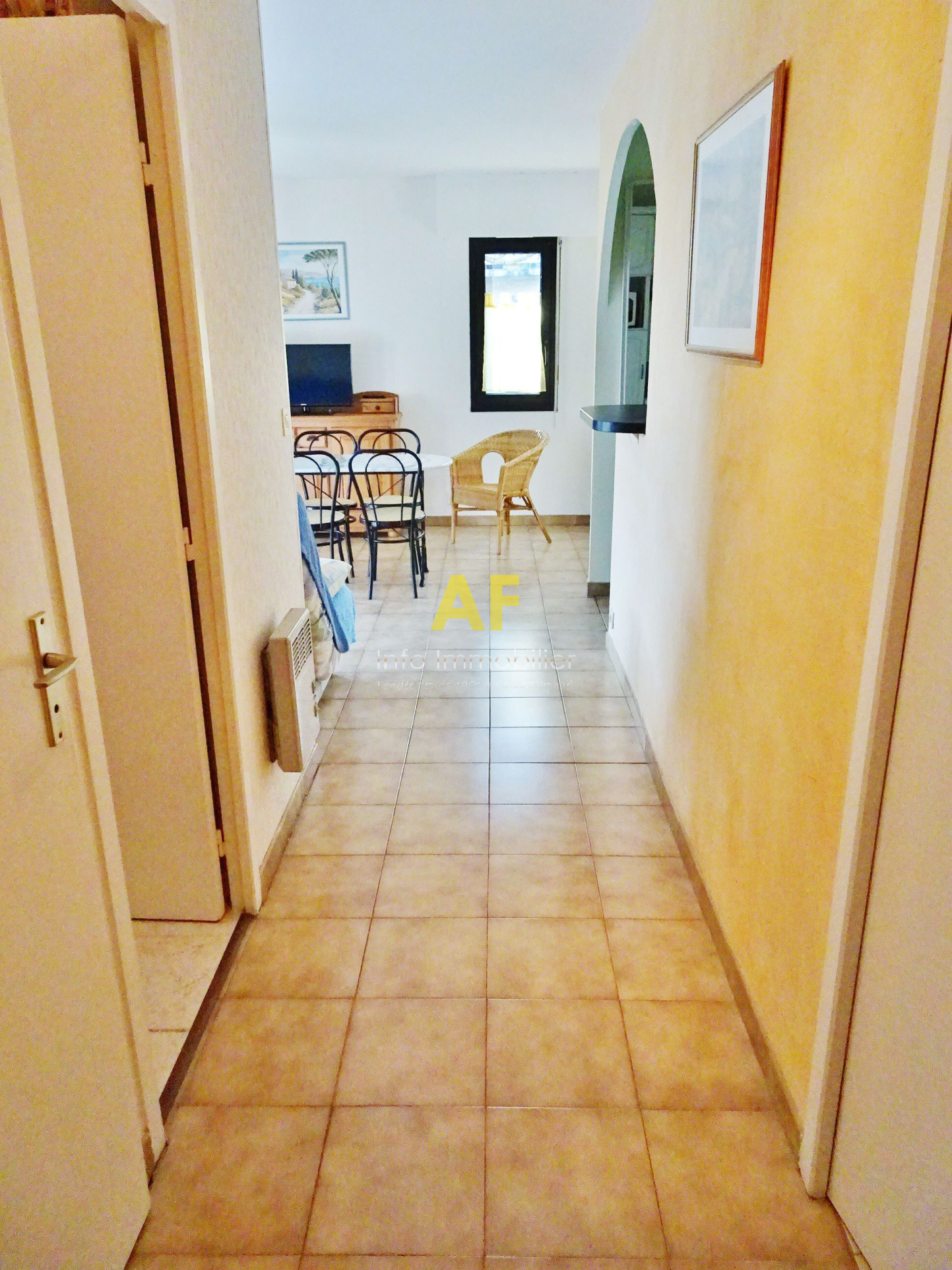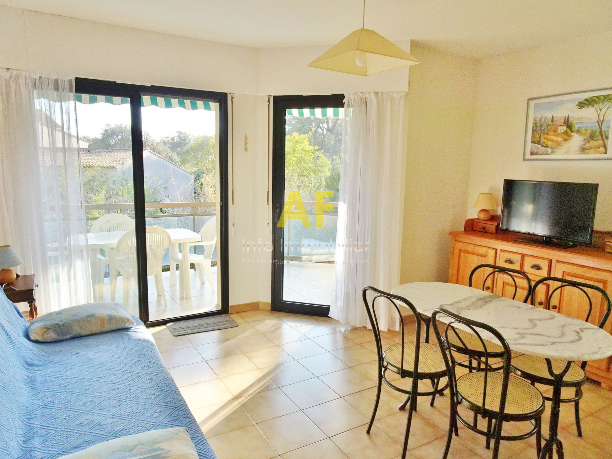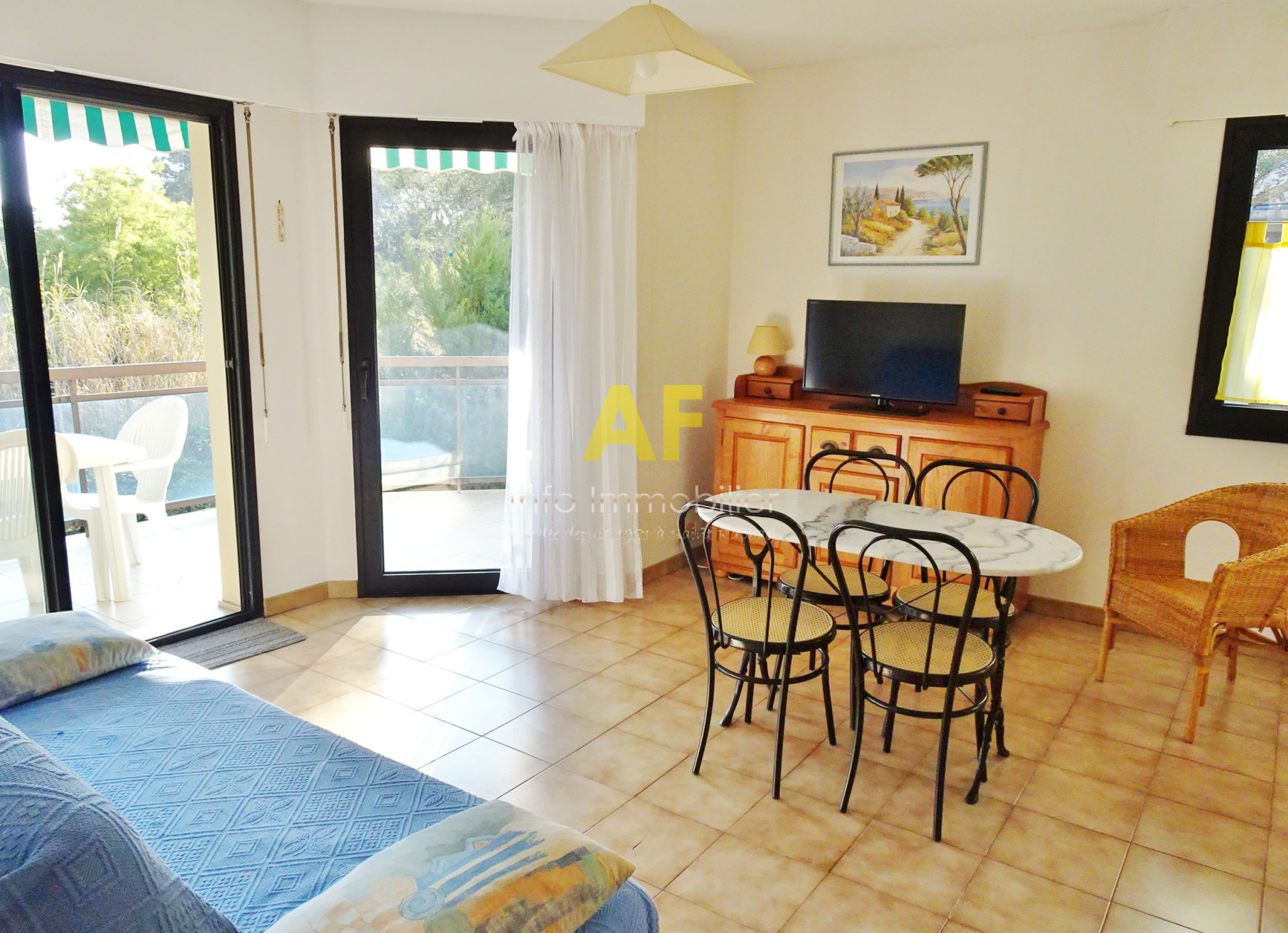 Saint-Raphaël (83700)EXCLUSIVITE - SAINT RAPHAEL, quartier de Boulouris, très agréable appartement d'angle de type 2 pièces + terrasse composé d'un hall d'entrée, séjour avec placard ouvrant sur belle terrasse exposition Sud et Ouest, Kitchenette équipée, chambre avec placard ouvrant sur terrasse, salle de bains avec fenêtre, wc séparé. Le tout dans une petite résidence de standing sécurisée parfaitement au calme, située à 300m de tous les commerces et à proximité de la mer à pied. Grand garage en sous-sol. Copropriété composée de 63 lots (y compris stationnement) dont seulement 28 lots principaux d'habitation. Charges courantes annuelles : 1258 €