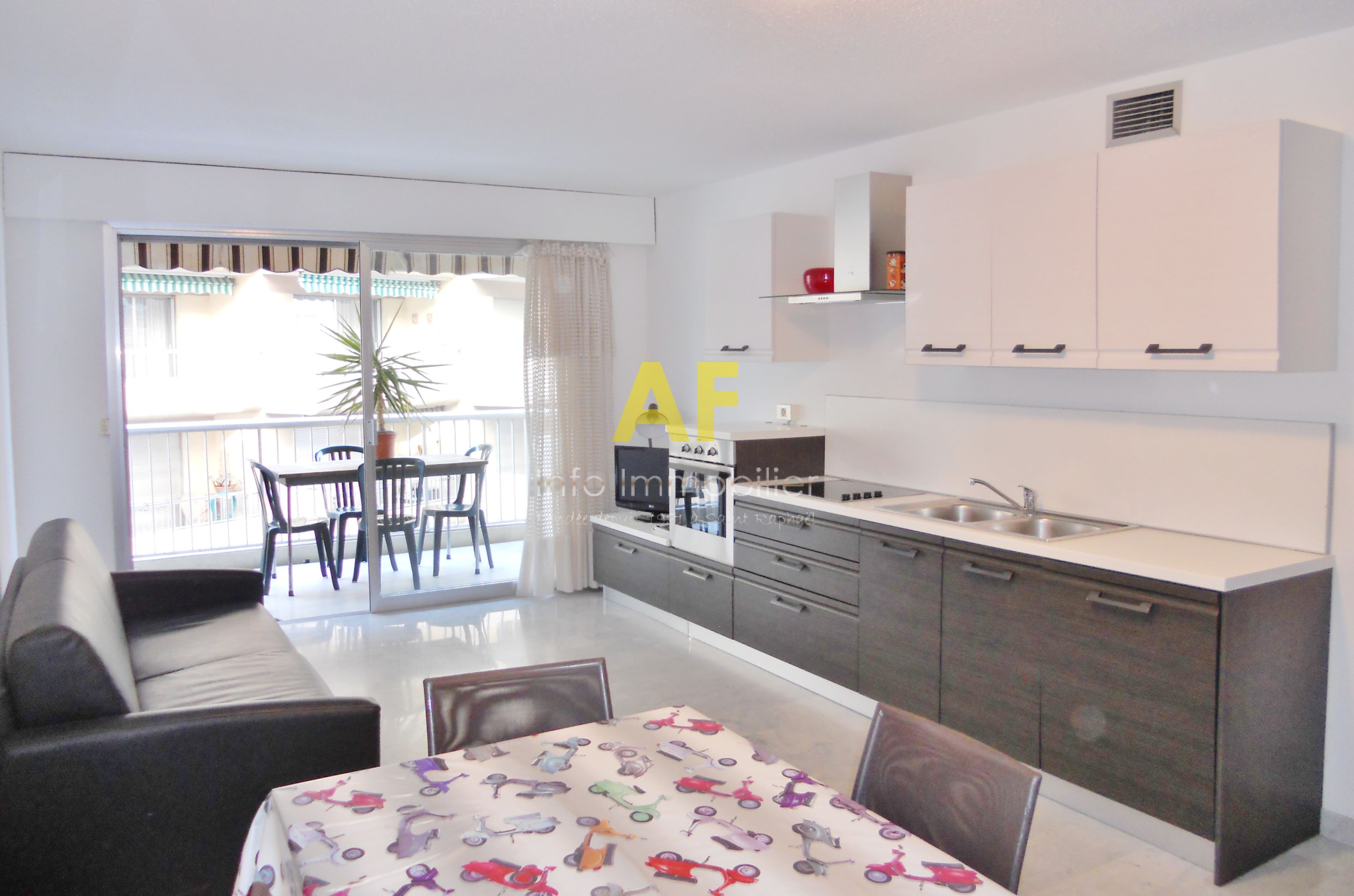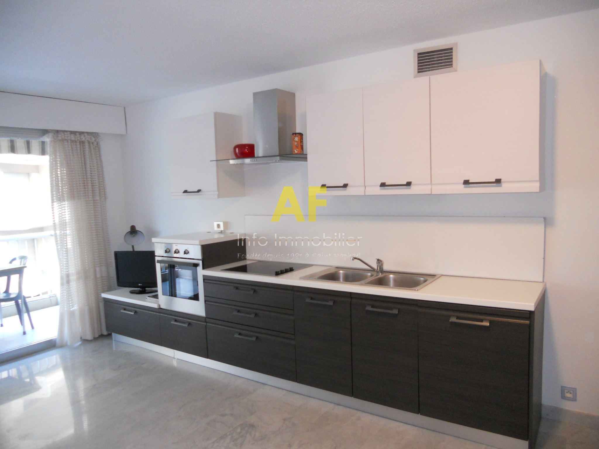 Saint-Raphaël (83700)SAINT RAPHAEL - Triangle d'Or - Bel appartement de type 2/3 pièces 54m² + vaste terrasse 19,50m² avec jolie vue mer de côté. Il se compose d'un hall d'entrée avec placard, un séjour salon avec cuisine américaine aménagée et équipée ouvrant sur une terrasse de 19,50m² avec jolie vue mer de côté, dégagement, un coin cabine ouvrant sur la terrasse, une chambre ouvrant sur terrasse, une salle d'eau, un wc avec lave mains. Volets roulants électriques et store sur terrasse. Dans résidence de standing très prisée située face aux plages, à deux pas du plein centre ville, des commerces et de la gare à pied. Cet appartement est vendu avec un emplacement de parking privatif en sous-sol ainsi qu'une cave. Copropriété composée de 560 lots (y compris stationnements et caves) dont 170 lots principaux d'habitation. Charges courantes annuelles :