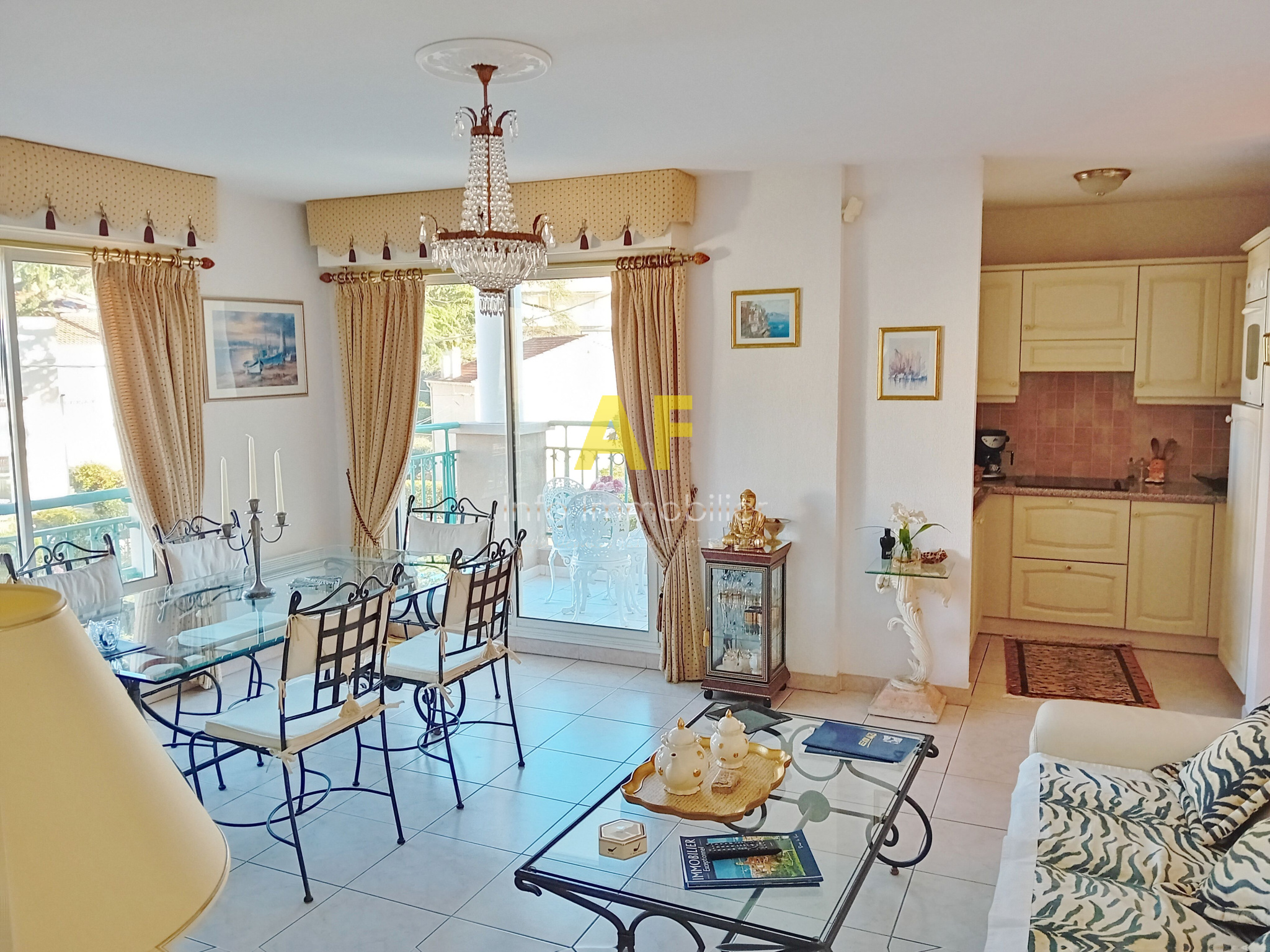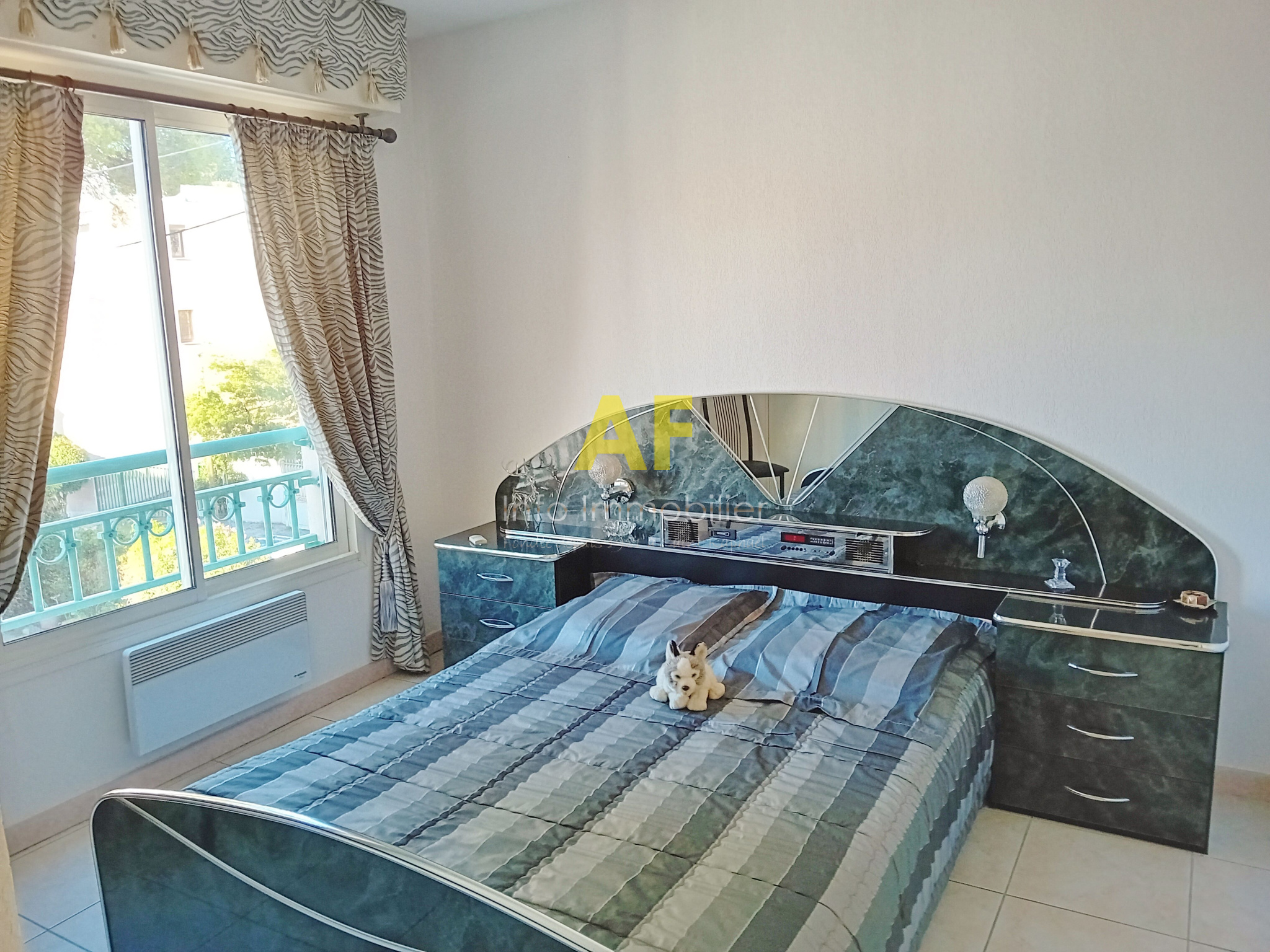 Saint-Raphaël (83700)SAINT RAPHAEL, BORD DE MER, très agréable appartement 2 pièces en parfait état avec jolie vue mer de côté, dans petite résidence de standing sécurisée avec joli parc arboré. L'appartement se compose d'une entrée desservant un séjour ouvrant sur une terrasse avec belle vue degagée sur le parc et la mer, kitchenette équipée, dégagement avec placard desservant une chambre avec placard ainsi qu'une salle de bains avec wc et fenêtre. Volets roulants électriques, climatisation dans la chambre. Emplacement privilégié pour cette belle résidence parfaitement entretenue située face aux plages de Beau Rivage, à deux pas du Port de Santa Lucia, à proximité immédiate du centre ville et de la gare à pied. Un emplacement de stationnement en sous-sol ainsi qu'une cave sont également vendus avec l'appartement. Copropriété composée de 35 lots (y compris caves et stationnements) dont seulement 10 lots principaux d'habitation. Charges courantes annuelles : 1610 €. Taxe Foncière 1165 €.