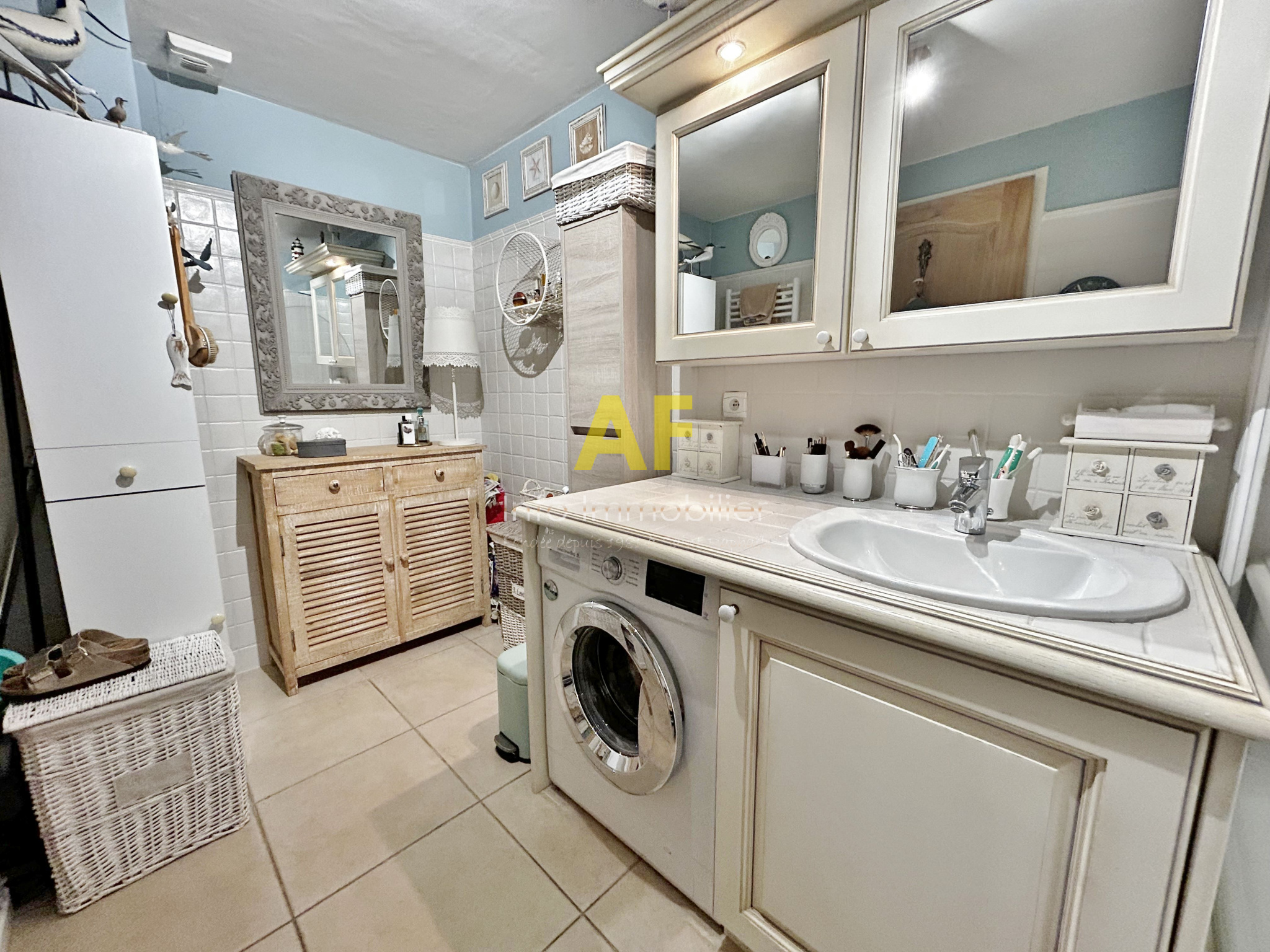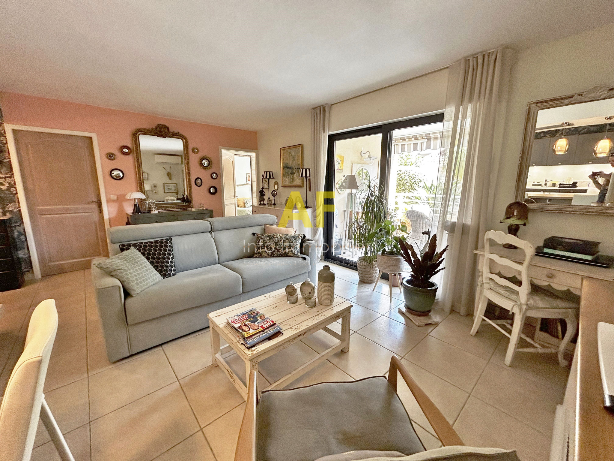 Saint-Raphaël (83700)SAINT RAPHAEL - TRIANGLE D'OR, confortable appartement de type 2 pièces 53m² en parfait état, avec belle terrasse 18m² exposée sud, composé : d'un hall d'entrée avec placard, wc avec lave mains, séjour et cuisine américaine aménagée et équipée le tout ouvrant sur une terrasse de 18m², chambre avec placard et accès terrasse, salle de bains. Résidence de STANDING RECENTE située à 100m des plages de sable fin, à deux pas du centre ville et de la gare à pied. Un GARAGE ainsi qu'une cave en sous-sol sont également inclus dans le prix de vente. La copropriété est composée de 132 lots (y compris caves et garages) dont seulement 44 lots principaux d'habitation répartis en deux petits batiments. Charges courantes annuelles : 999 €.