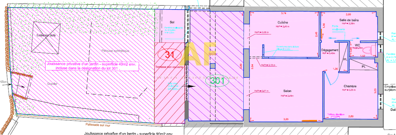 Un jardin privatif de 40 m², soigneusement aménagé et arboré, ainsi qu’une terrasse de 15 m², vous offrent un espace parfait pour vos moments de détente ou vos repas en plein air.