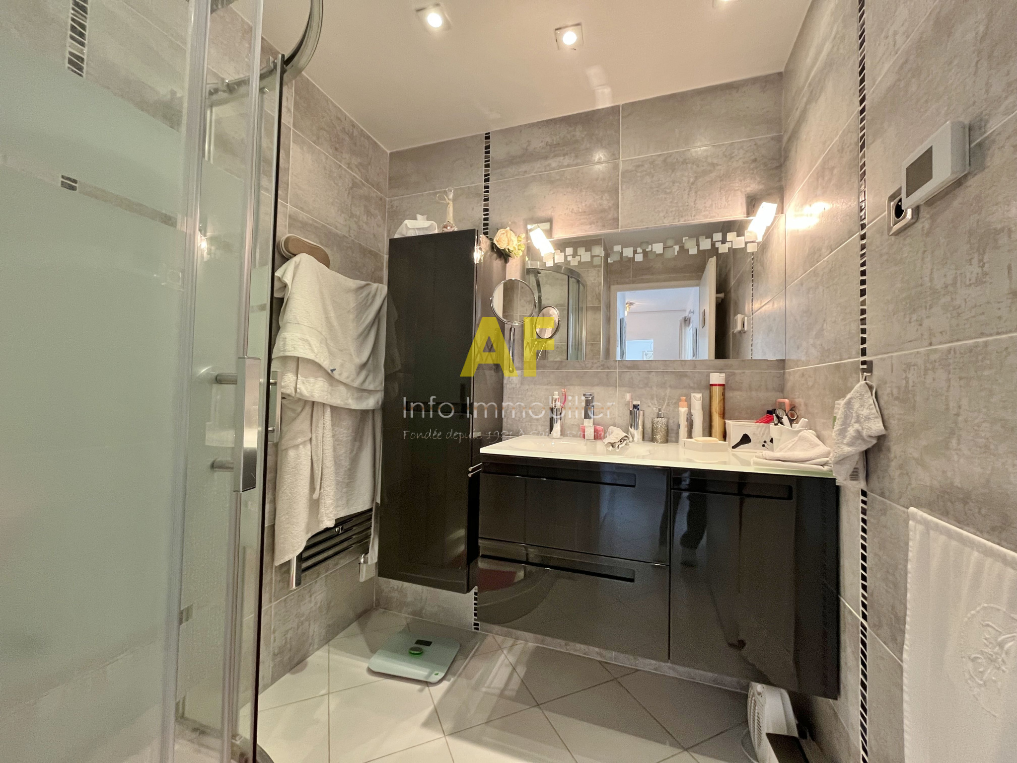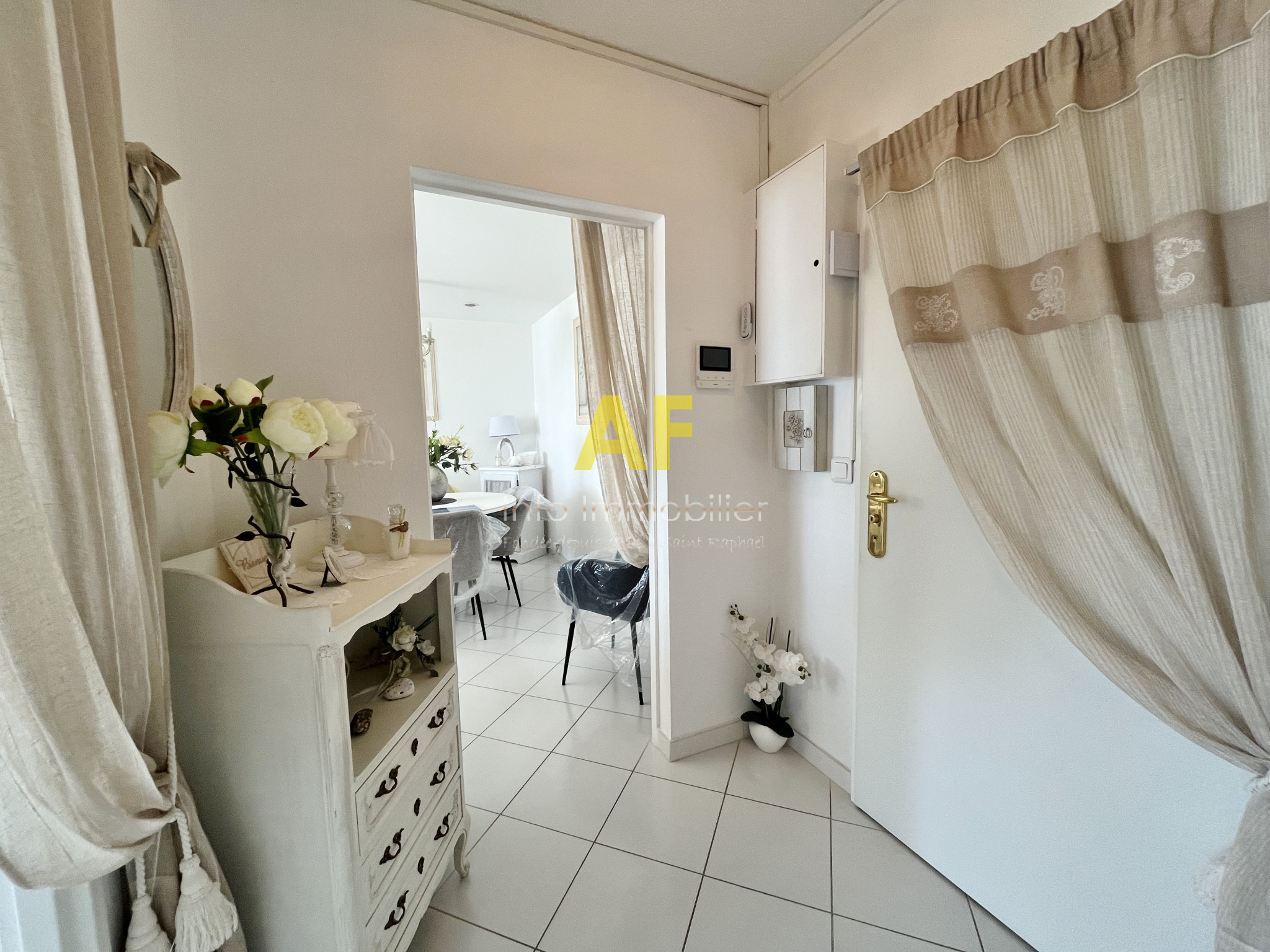 Saint-Raphaël (83700)SAINT RAPHAEL FACE PLAGES, dans le Triangle d'Or, appartement 2 pièces 50m² dont toutes les pièces principales ouvrent sur une terrasse de 16m² avec VUE MER PANORAMIQUE. Cet appartement rénové avec gout se compose d'un hall d'entrée avec placard desservant un séjour salon, une cuisine séparée ainis qu'une chambre avec placard, toutes les pièces ouvrant sur la terrasse face mer, une salle de bains, un wc avec lave mains. Volets roulants et stores électriques sur terrasse. Disposition intérieure exceptionnelle vous permettant de bénéficier d'une vue mer panoramique depuis, le séjour, la cuisine et la chambre. Emplacement exceptionnel pour cette résidence de standing sécurisée et très prisée située face aux plages, à deux pas du plein centre ville, des commerces et de la gare à pied. Ce bien est vendu avec un emplacement de parking privatif en sous-sol ainsi qu'une cave. Idéal pour une résidence secondaire ou principale pour les amoureux de la mer et du tout à pied !! Copropriété composée de 531 lots (y compris stationnements et caves) dont 170 lots principaux d'habitation. Charges courantes annuelles : 1915 €