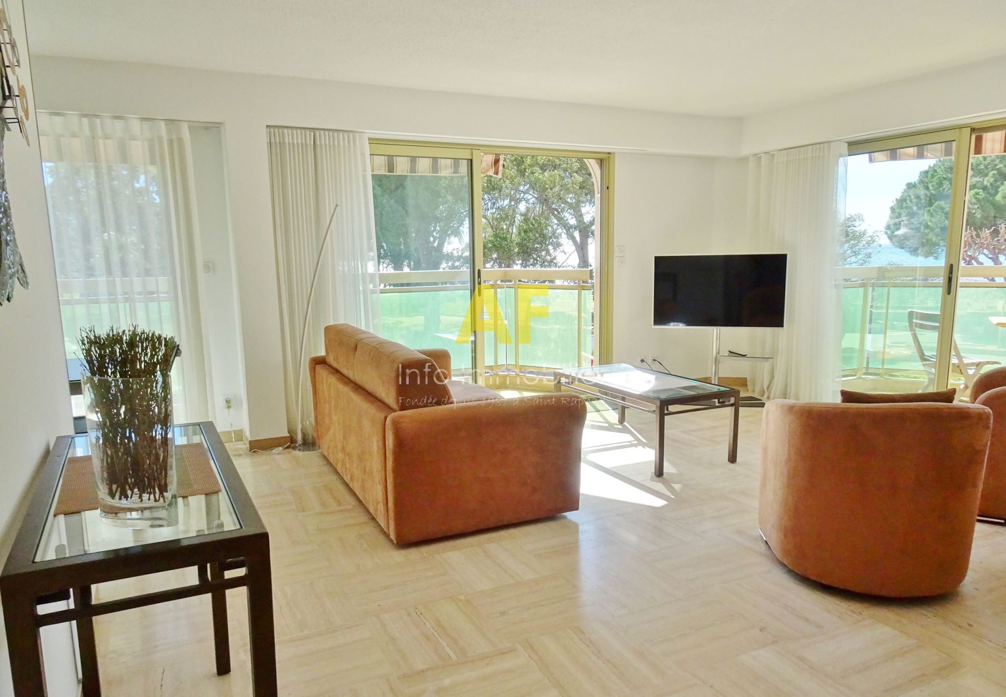 Saint-Raphaël (83700)Exclusivité - Saint Raphaël, dans le Triangle d'or, jolie vue mer de ce bel appartement 3 pièces 89m² rénové composé d'un séjour/salon d'angle ouvrant sur la mer et les jardins de Beau Rivage, cuisine aménagée et équipée, 2 confortables chambres de 14,50m² chacune (dont une face à la mer), salle d'eau et salle de bains, 2 wc, balcons. Le tout dans une résidence de standing de bord de mer située face aux plages, à deux pas du centre ville et de la gare à pied. Baies vitrées aluminium double vitrage. Climatisation réversible. Stores sur balcons et volets roulants électriques. Garage et cave. Copropriété de 140 lots (y compris caves et garages) dont 49 lots principaux d'habitations. Charges courantes annelles : 2141 € / an. Idéal pour résidence principale ou secondaire pour tous ceux qui souhaitent vivre dans un quartier animé situé face à la mer, à deux pas des jardins, et qui veulent pouvoir tout faire à pied.