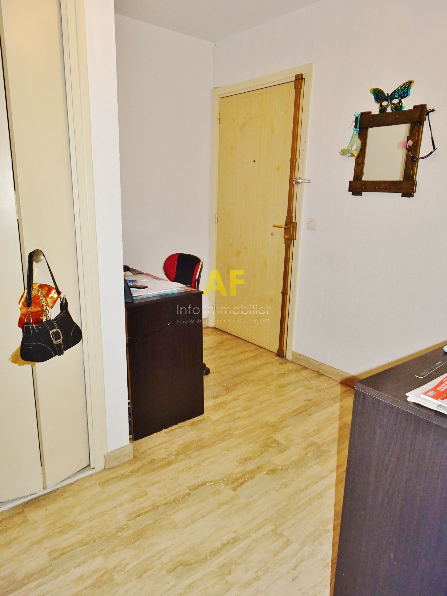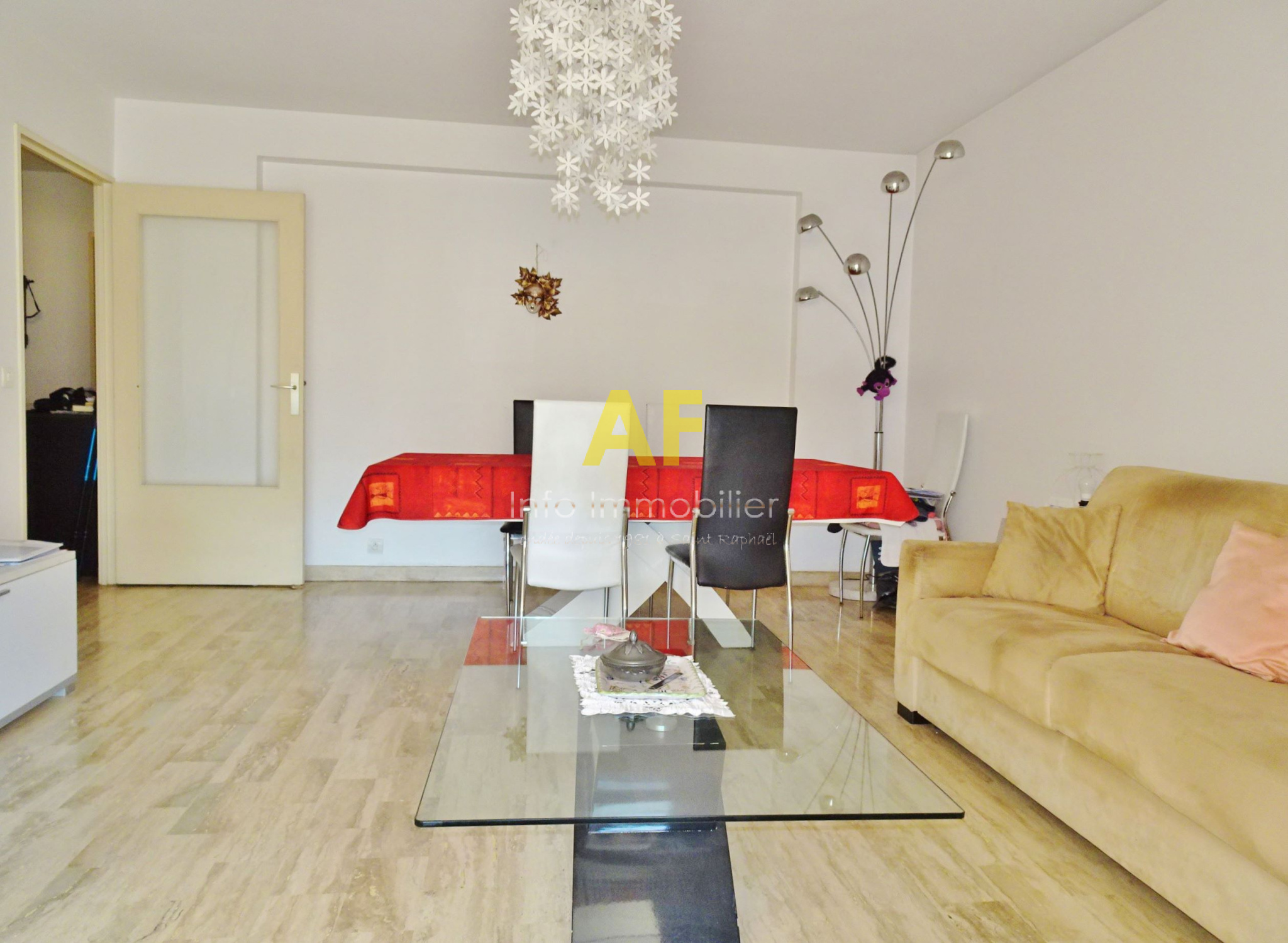 Saint-Raphaël (83700)Saint Raphaël, proche centre ville et lycée Saint Exupéry, appartement 3 pièces, en étage élevé avec ascenseur, dont toutes les pièces principales ouvrent sur une terrasse et qui bénéficie d'une agréable vue sur la verdure et la piscine depuis les chambres. Il se compose : d'un hall d'entrée avec placard, un séjour-salon, une cuisine aménagée avec coin repas, un dégagement desservant 2 chambres avec placards, une salle d'eau et un wc séparé. Stores sur terrasses. Chauffage central individuel. Résidence sécurisée avec vaste piscine, gardien et espaces verts. Un emplacement de parking privatif dans l'enceinte de la résidence ainsi qu'une cave en sous-sol sont vendus avec l'appartement. Copropriété composée de plusieurs bâtiments totalisant 378 lots principaux d'habitation. Charges courantes annuelles : 1292 €. Taxe Foncière 1190 €