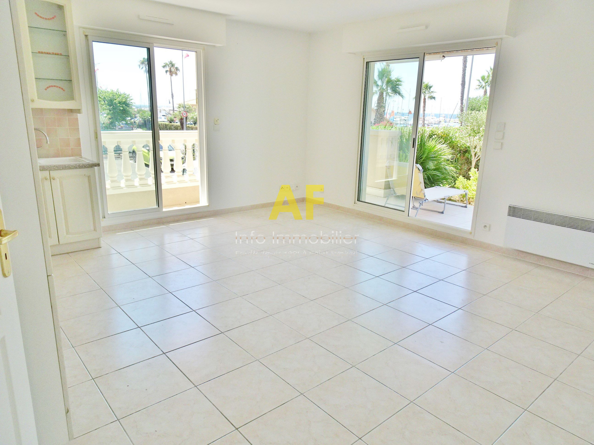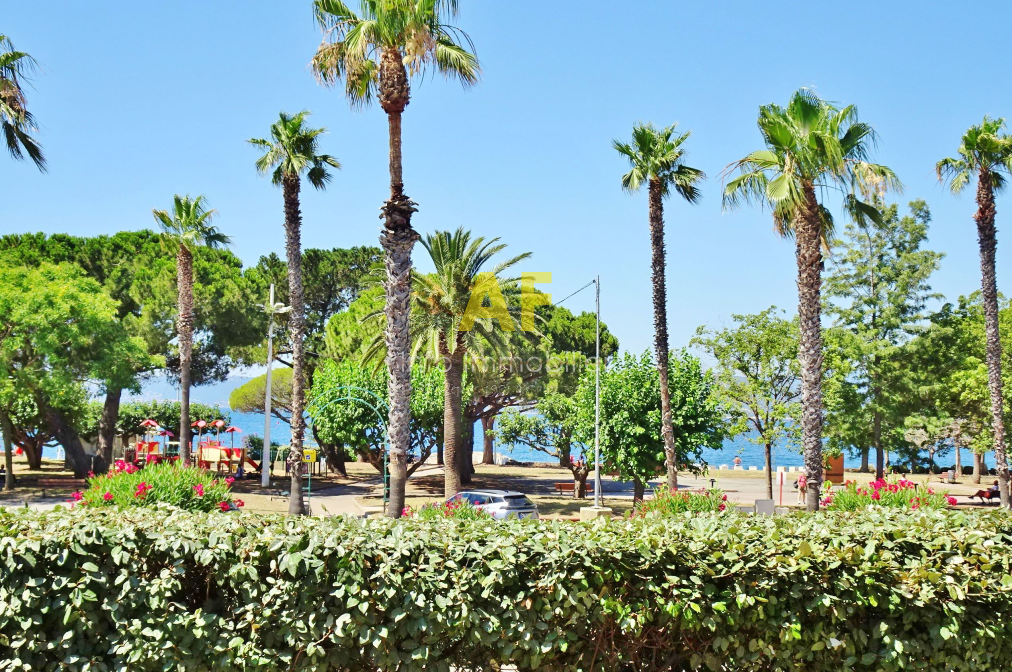 Saint-Raphaël (83700)SAINT RAPHAEL, BORD DE MER, très agréable appartement 3 pièces d'angle en très bon état avec jolie petite vue mer, dans petite résidence de standing sécurisée avec joli parc arboré. L'appartement se compose d'une entrée avec placard desservant un séjour avec cuisine américaine le tout ouvrant sur une terrasse couverte et un jardin d'environ 40m², deux chambres avec placard dont une expo Sud, une salle de bains et un wc séparé. Volets roulants électriques, climatisation dans les deux chambres. Emplacement privilégié pour cette belle résidence parfaitement entretenue située face aux plages de Beau Rivage, à deux pas du Port de Santa Lucia, à proximité immédiate du centre ville et de la gare à pied. Un emplacement de parking privatif ainsi qu'une cave en sous-sol sont également vendus avec l'appartement. Copropriété composée de 35 lots (y compris caves et stationnements) dont seulement 10 lots principaux d'habitation. Charges courantes annuelles : 1493 €. Taxe Foncière 1369 €
