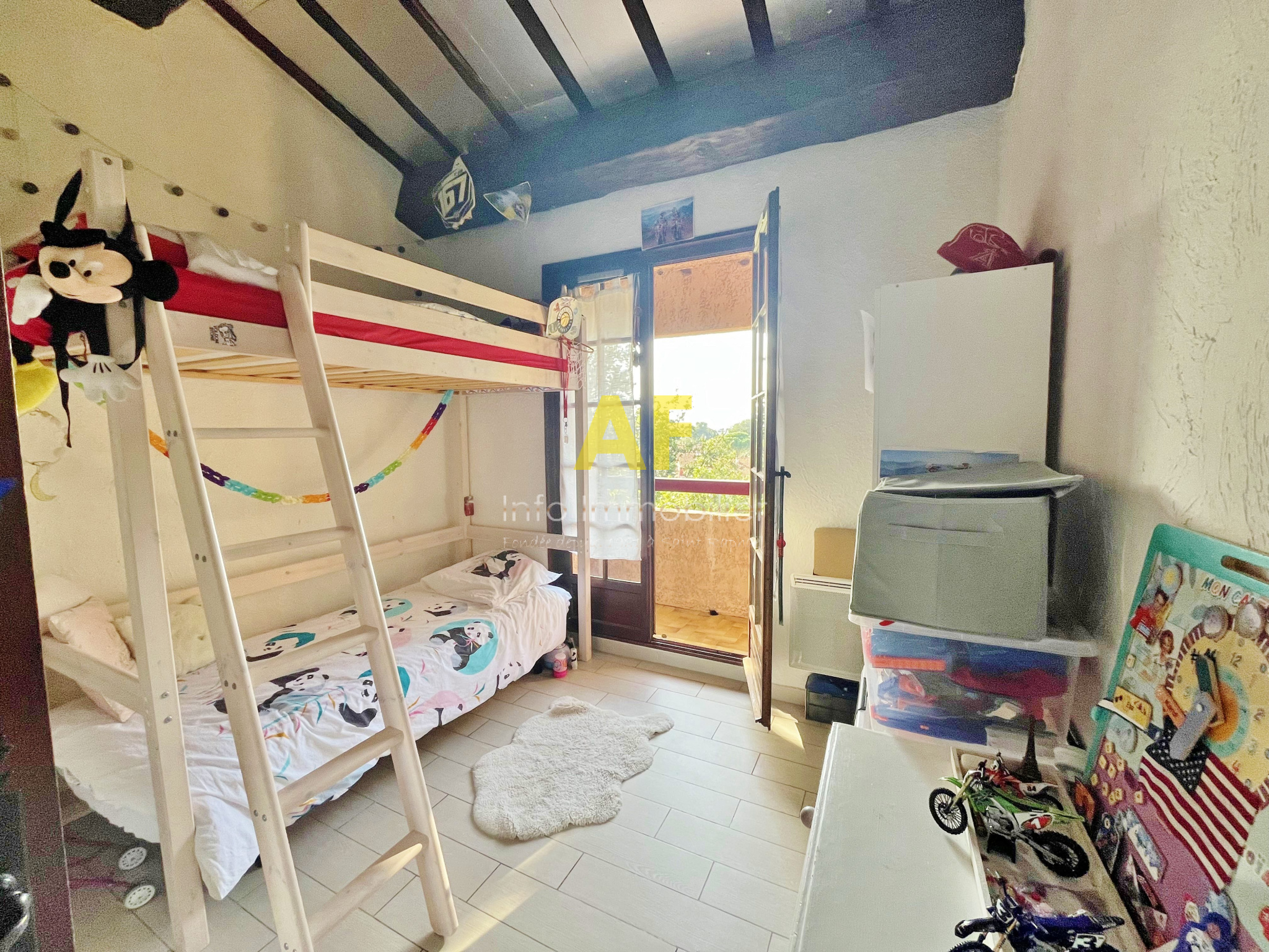 Au rez-de-jardin, vous serez accueilli par une entrée qui dessert une cuisine fonctionnelle et un salon-séjour lumineux, ouvert sur une belle terrasse orientée à l'ouest, idéale pour profiter des couchers de soleil. À l'étage, un pallier mène à deux chambres en sous pente, toutes deux ouvertes sur une grande terrasse couverte offrant une vue agréable. Une salle de bains et un WC séparé complètent cet étage.