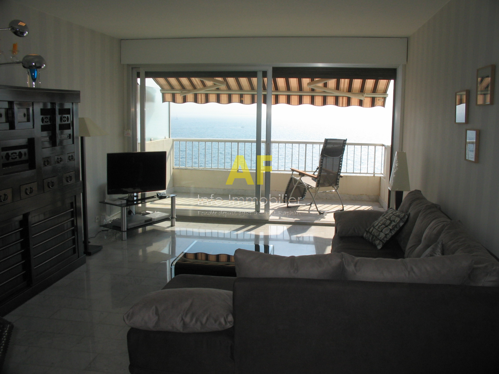 Saint-Raphaël (83700)Saint Raphaël, Bord de Mer, dans le Triangle d'Or, bel appartement 3 pièces 80m² face mer en dernier étage. Il se compose d'un hall d'entrée, séjour salon 26m² ouvrant sur une terrasse bénéficiant d'une superbe vue mer panoramique, cuisine aménagée, dégagement avec placard, 2 chambres avec placard, une salle d'eau, une salle d'eau avec wc,. Volets roulants et store éléctriques sur terrasse . Dans résidence de standing située face aux plages, à deux pas du plein centre ville, des commerces et de la gare à pied. Emplacement rare et très recherché. Cet appartement est vendu avec un emplacement de parking privatif en sous-sol ainsi qu'une cave. Copropriété composée de 560 lots (y compris stationnements et caves) dont 170 lots principaux d'habitation. Charges courantes annuelles : 3577 €