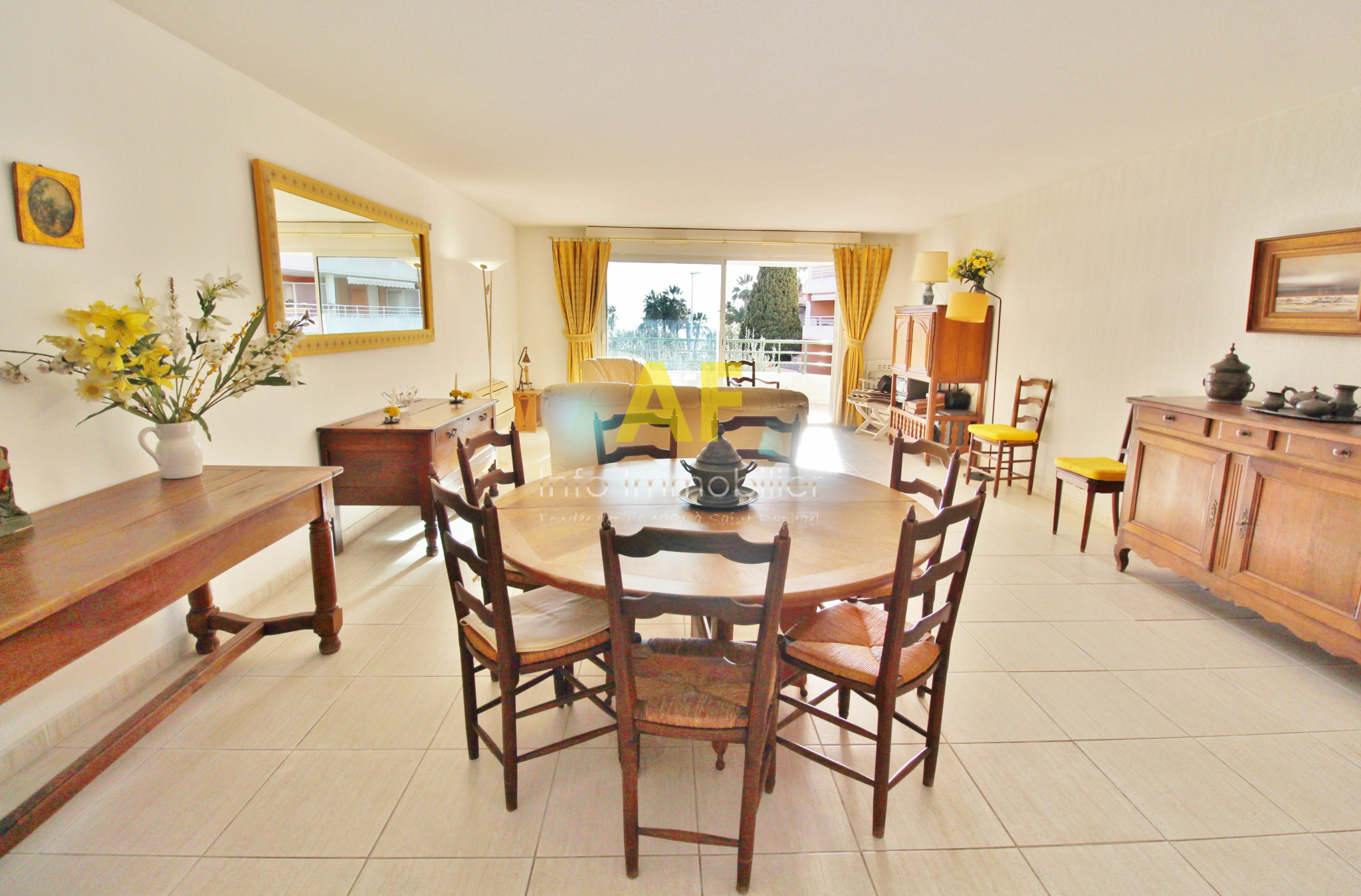 Saint-Raphaël (83700)SAINT RAPHAEL - TRIANGLE D'OR : Dans une résidence sécurisée du bord de mer, grand appartement de 101m² composé comme suit: une entrée avec placard, un grand salon/séjour avec cuisine ouverte de 47m², une suite parentale avec salle d'eau et wc, deux chambres, une salle de bain et wc séparé avec lave-mains. L'appartement a une terrasse de 13m² avec vue mer. Un grand garage vient compléter ce bien. Véritable tout-à-pied, il est proximité immédiate des plages et du centre-ville. Produit rare à la vente en vu de la qualité de son emplacement et de sa surface. Le ravalement de la façade a déjà été payé. Copropriété composée de 36 lots (y compris cave et stationnements) dont 15 lots principaux d'habitation. Charges annuelles : 2200 €
