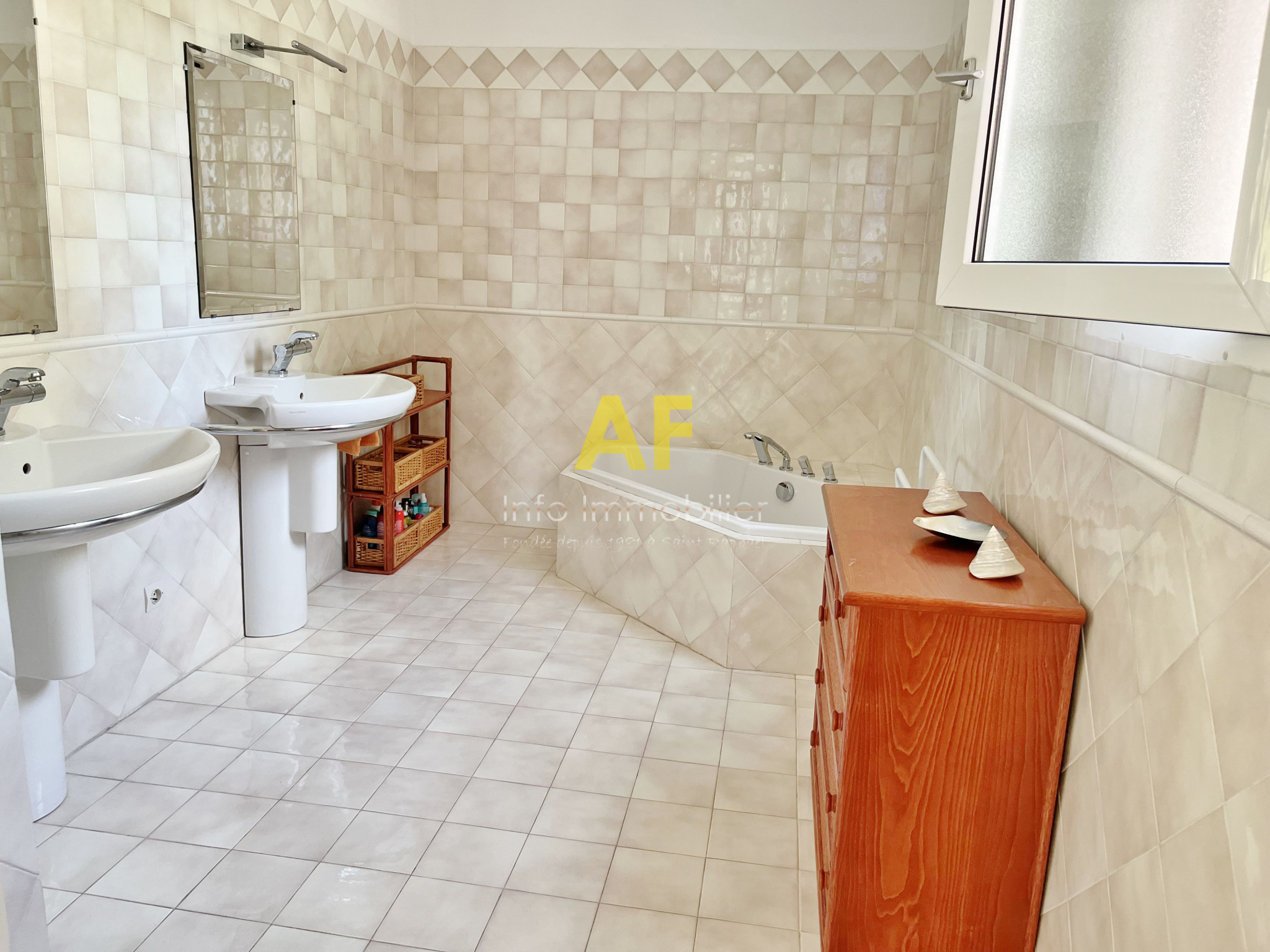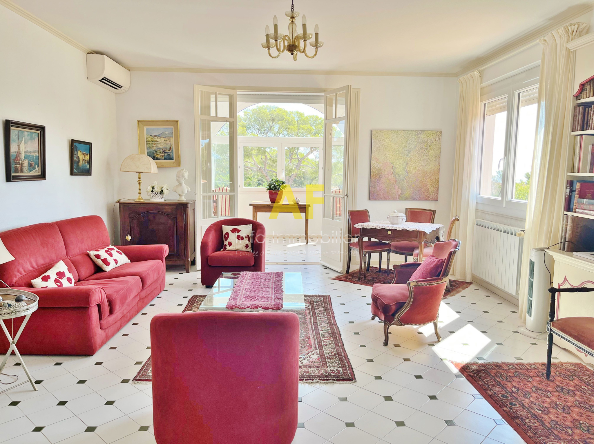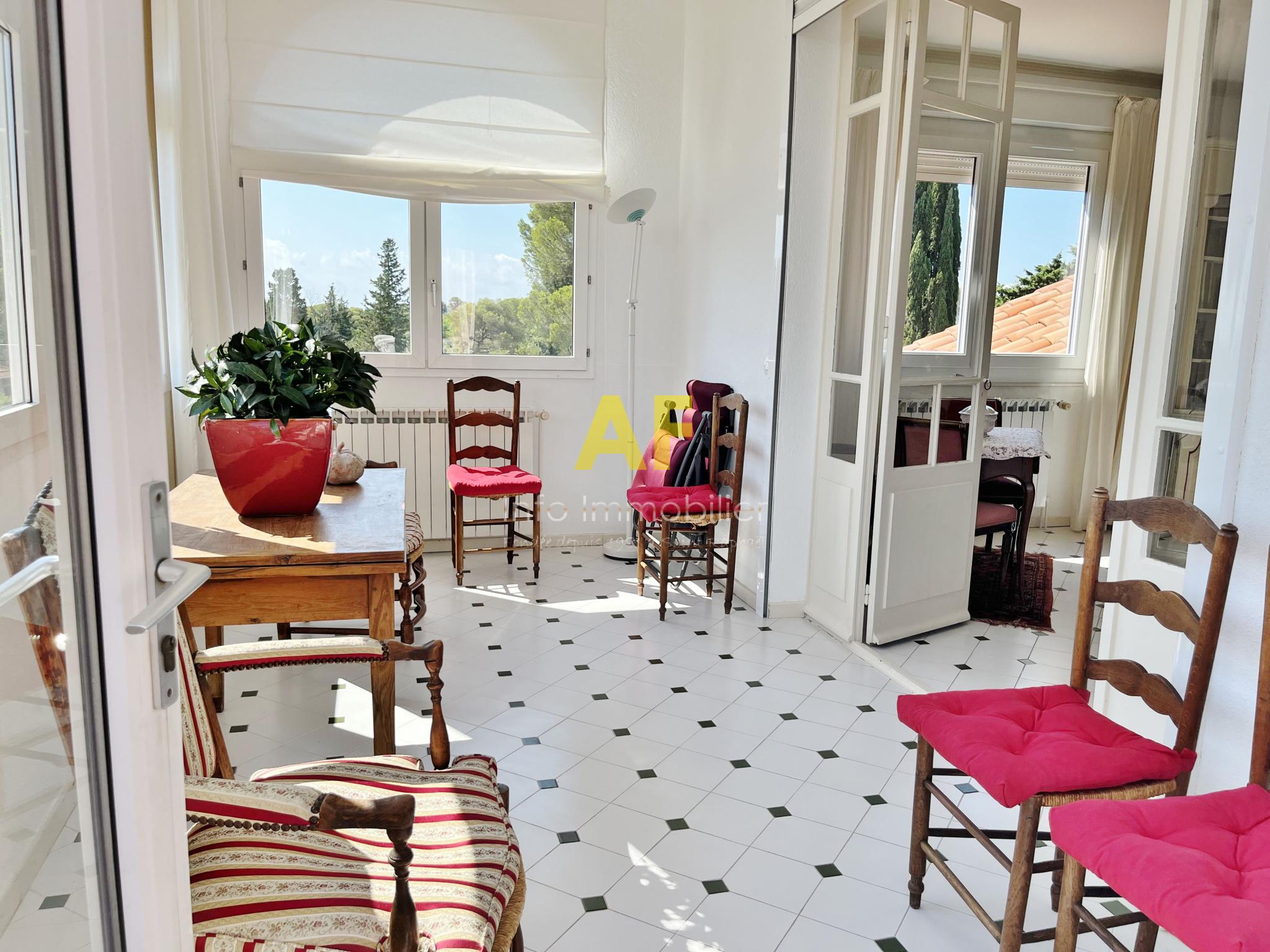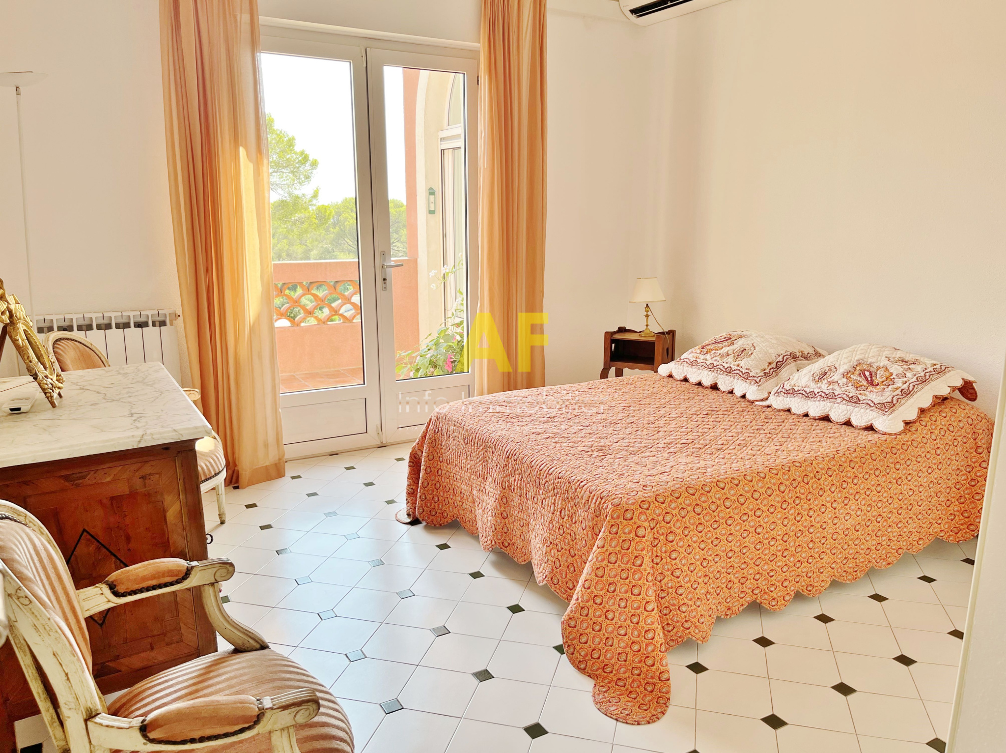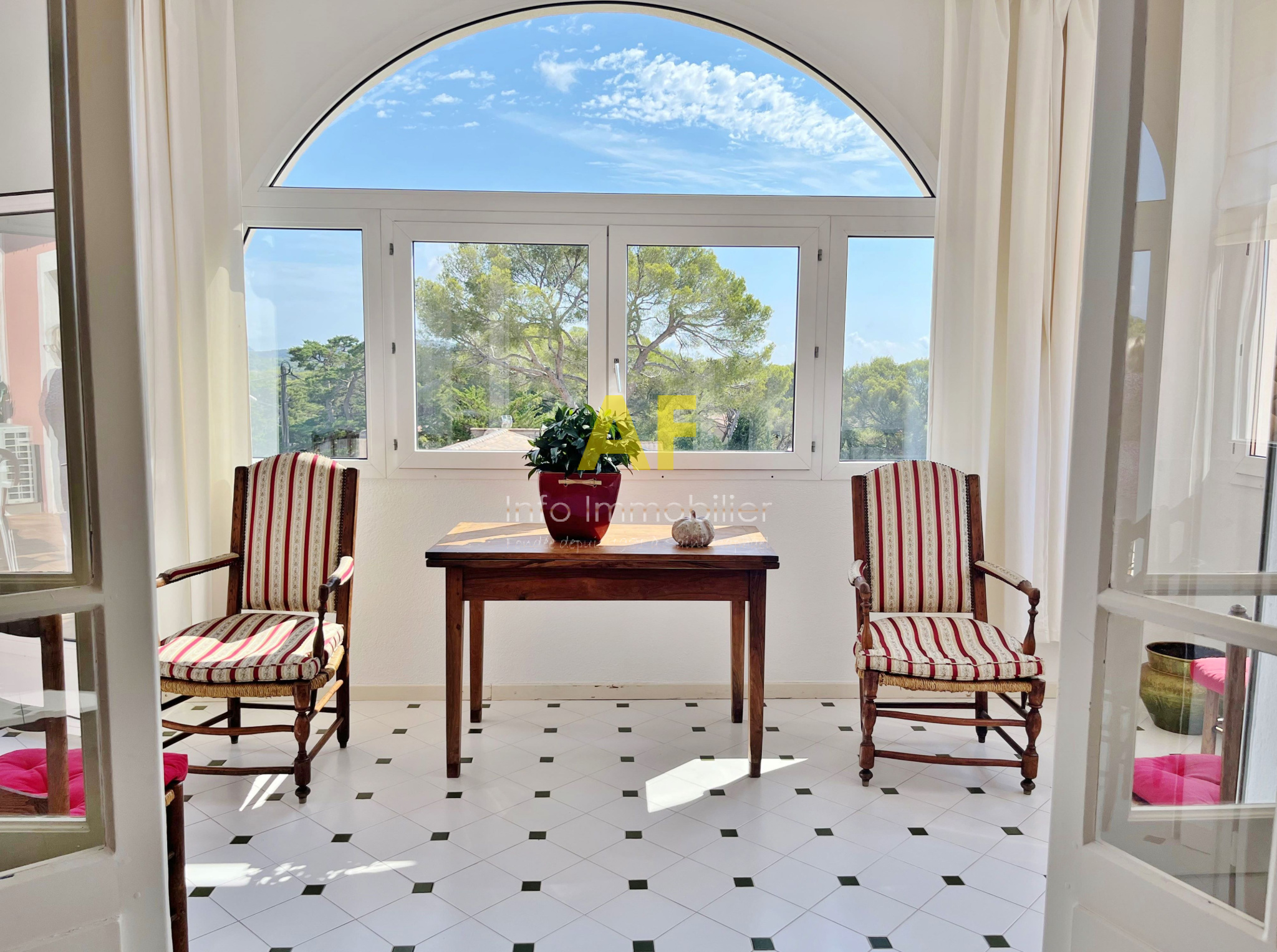 Saint-Raphaël (83700)Saint Raphaël, dans quartier très résidentiel et au calme, confortable appartement de type 4 pièces + terrasse et terrasse couverte - dernier étage - bénéficiant d'une belle vue dégagée jusquà la mer, dans petite copropriété de seulement deux étages. L'appartement, seul à son niveau, se compose d'un hall d'entrée, séjour salon ouvrant sur une agréable terrasse couverte de 12m² bénéficiant d'une jolie vue jusqu'à la mer, une vaste cuisine avec coin repas et cellier attenant, dégagement avec placard, 2 belles chambres de 13m² et 15m² chacune ouvrant toutes les deux sur une terrasse de 17m², grande salle de bains avec double vasques et fenêtres, wc avec fenêtre, ainsi qu'une dernière chambre/bureau. Appartement traversant bénéficiant d'une triple exposition. Chauffage central individuel + climatisation réversible. Volet roulant électrique. Porte Blindée.Une cave de 6m² ainsi qu'un emplacement de parking couvert complètent ce bien. Le tout situé tout proche du Parc Santa Lucia et du port, dans une petite copropriété composée de 17 lots (y compris stationnements et caves) dont seulement 4 lots principaux d'habitation. Charges courantes annuelles : 1060 € - Taxe Foncière 1541 €
