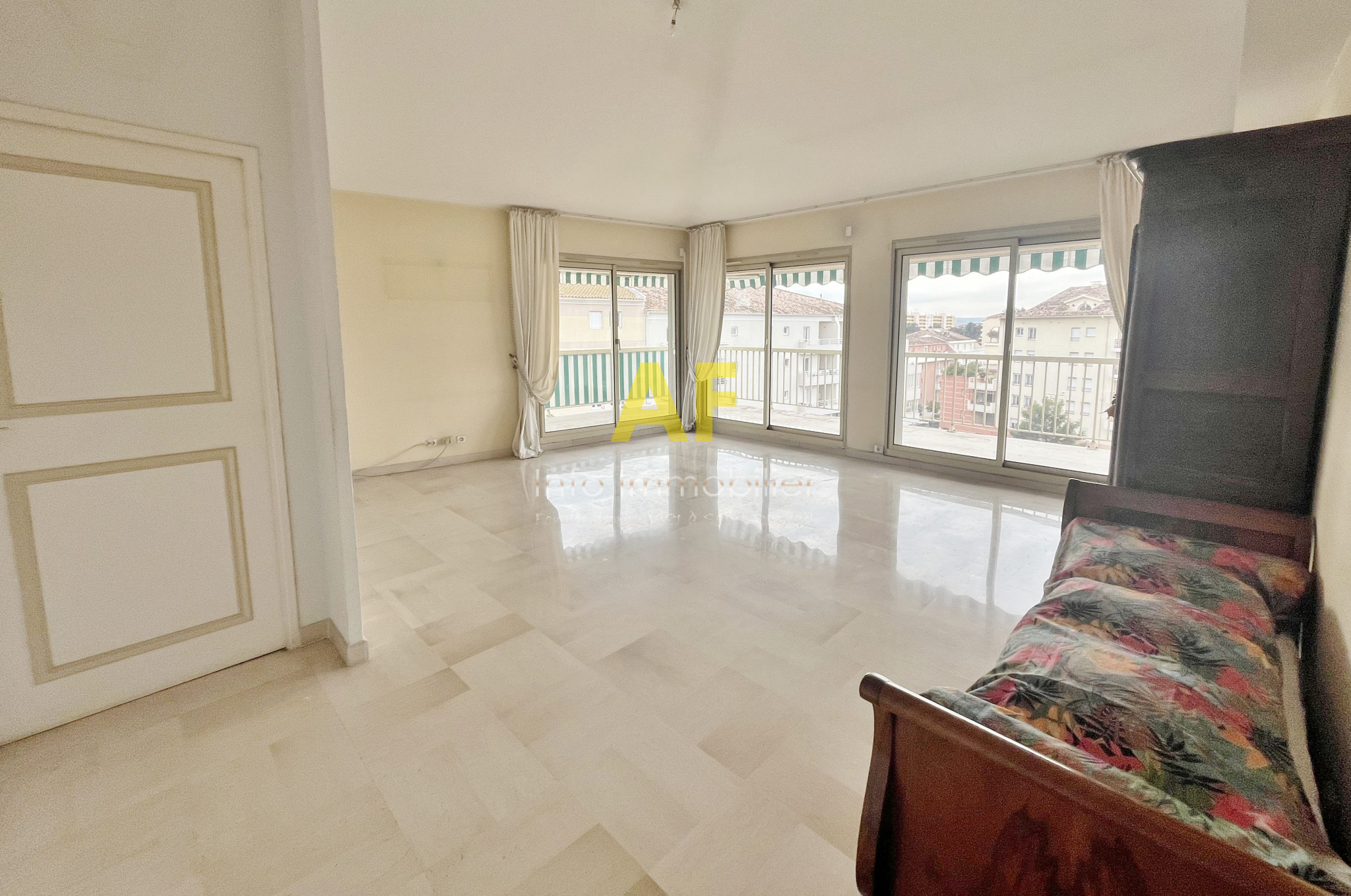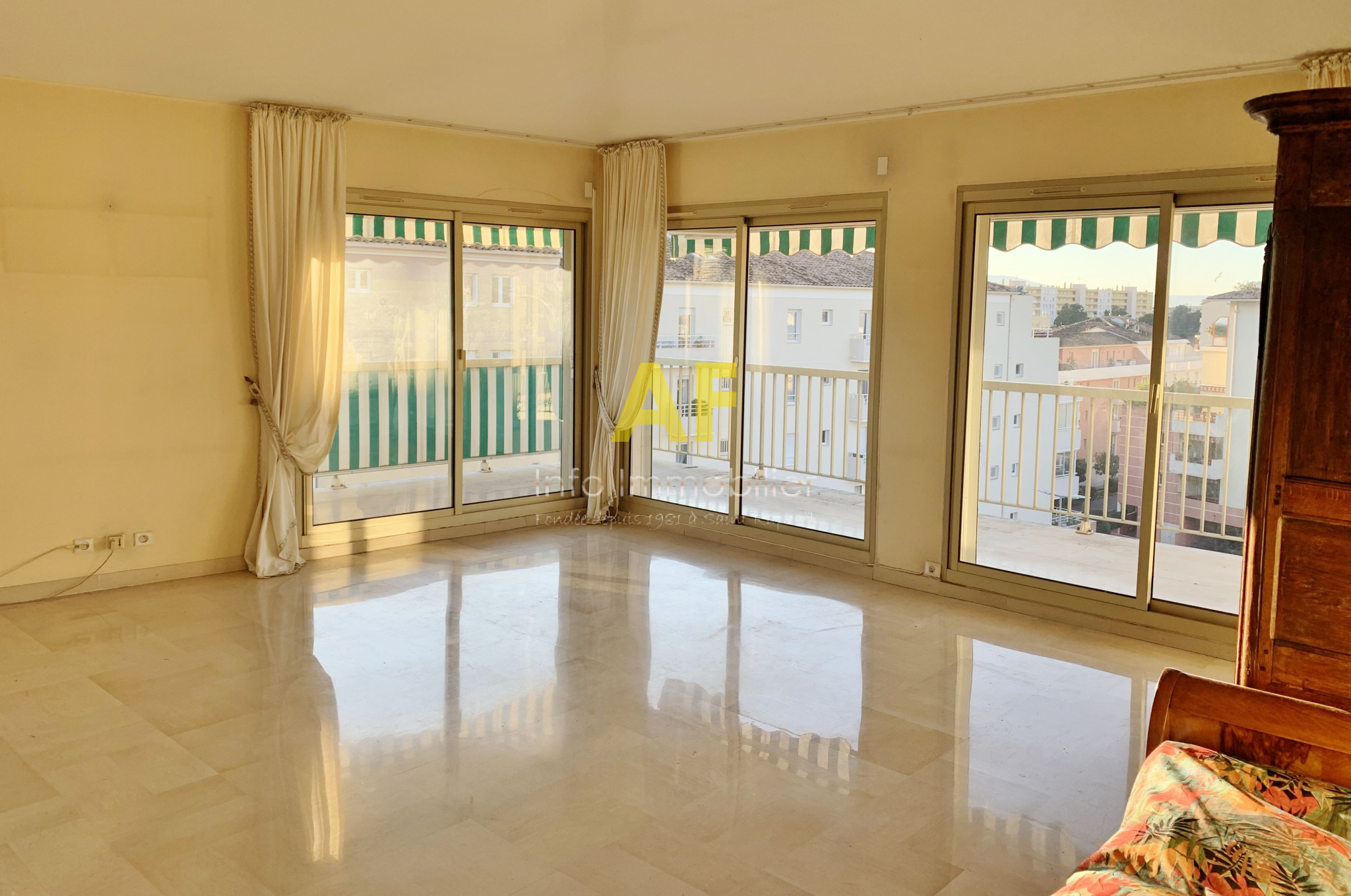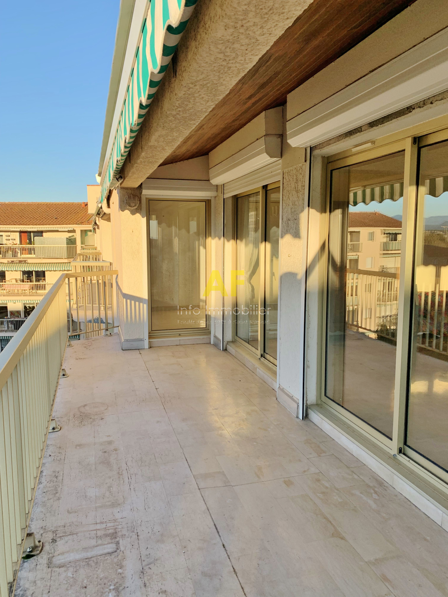 Saint-Raphaël (83700)SAINT RAPHAEL COEUR DE VILLE, confortable appartement 4 pièces - en dernier étage avec ascenseur - avec terrasse d'angle 23m². L'appartement se compose d'un hall d'entrée, un séjour salon avec double exposition Sud et Ouest ouvrant sur terrasse, une cuisine séparée avec coin repas accès terrasse, chambre 1 avec salle d'eau attenante, wc attenants, ouvrant sur terrasse, un dégagement desservant 2 chambres avec placard et accès à un balcon, une salle d'eau avec wc et une salle de bains. L'appartement à rénover, dispose à la fois d'une vue urbaine très dégagée mais également d'une échappée mer ainsi qu'une vue sur la verdure. Du fait de sa situation en dernier étage, vous bénéficierez d'une belle hauteur sous plafonds grace à des plafonds rampants. La copropriété, bien que située en coeur de ville, proche du vieux port à pied et de tous les commerces, est au calme. Un vaste garage double de 31m² en sous-sol ainsi qu'une cave de 8m² sont également inclus dans le prix de vente. Copropriété composée de 246 lots (y compris avec les caves et les garages) dont 83 lots principaux d'habitation / commerces. Charges courantes annuelles : 2128 €