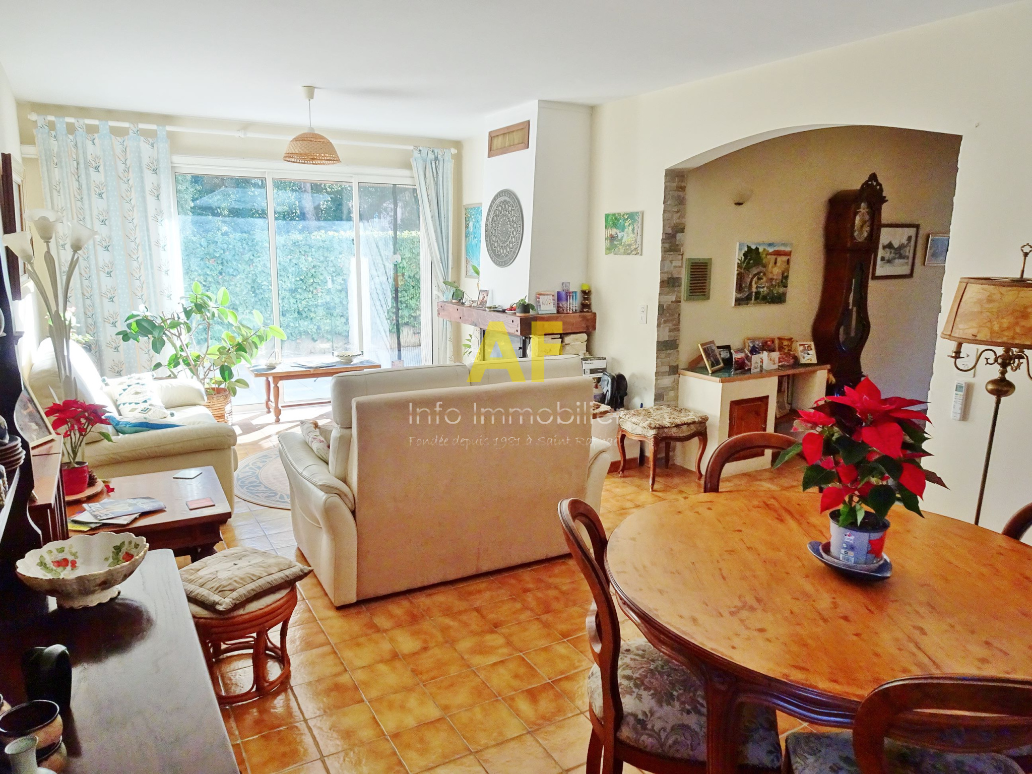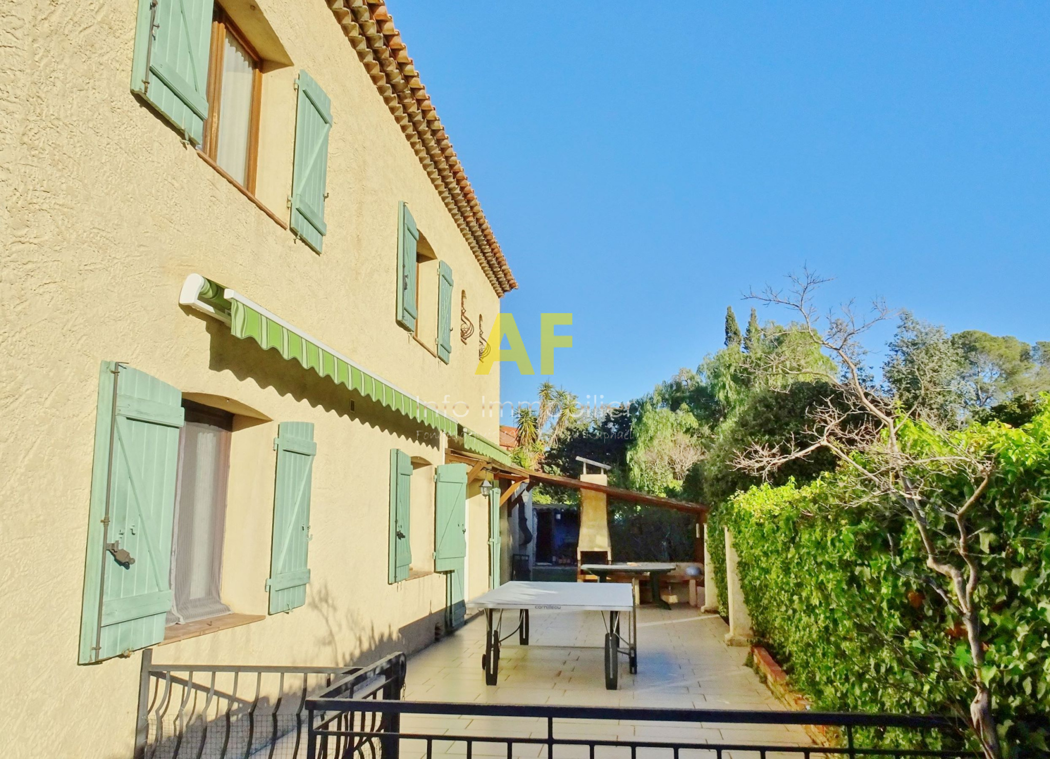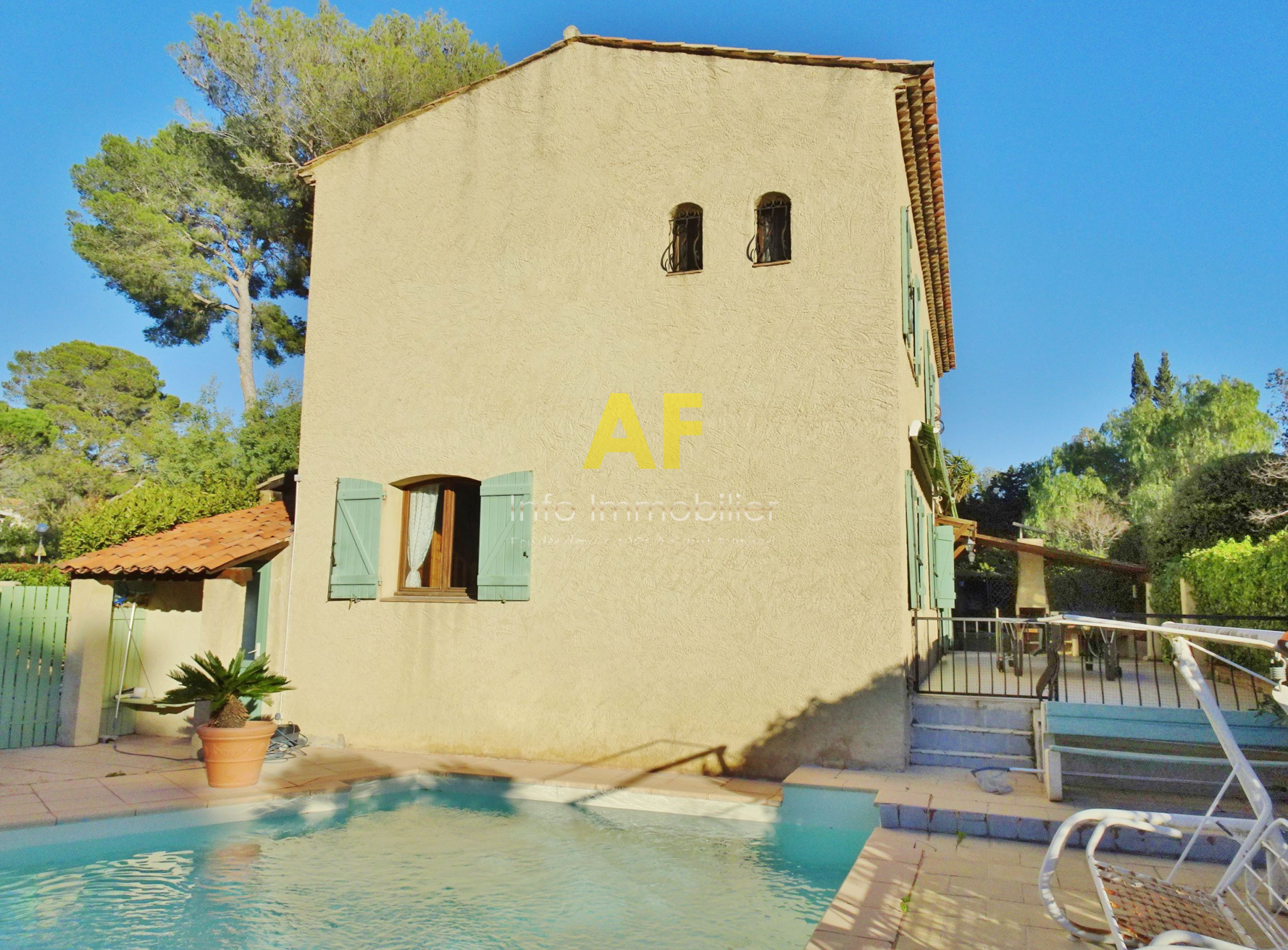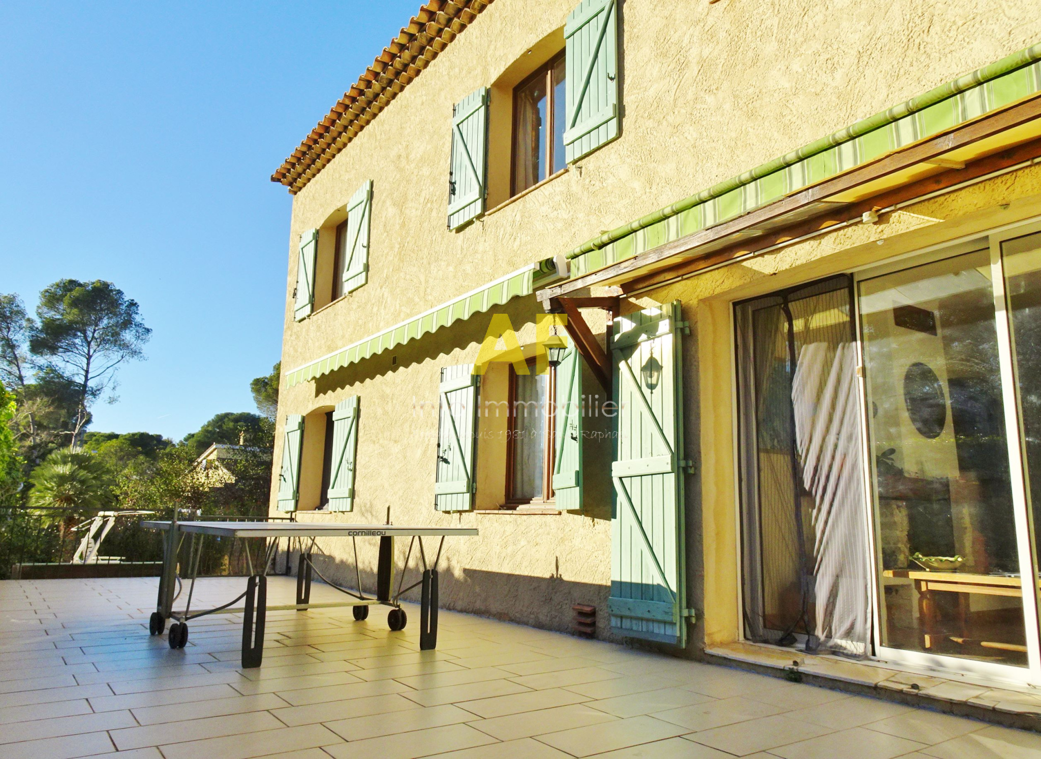Saint-Raphaël (83700)SAINT RAPHAEL - QUARTIER DE BOULOURIS - dans quartier résidentiel calme, agréable villa provencçale de 6 pièces principale + appartement semi-indépendant de type 2 pièces. La villa est composée au rez-de-chaussée d'un hall d'entrée avec placard, une cuisine coin repas, un séjour-salon avec cheminée ouvrant sur une vaste terrasse dallée de 46m² exposée au Sud, un dégagement desservant 2 chambres, une salle d'eau avec wc et fenêtre, un dressing et un bureau. A l'étage ; une grande chambre ou salle de jeu, une seconde chambre, une salle d'eau avec wc et fenêtre, un dégagement/buanderie permettant aussi l'accès à un appartement de type 2 pièces semi-indépendant (avec également un accès indépendant par l'extérieur) composé d'un séjour avec cuisine américaine ouvrant sur une terrasse, une chambre, une salle d'eau avec wc et fenêtre. Le tout édifié sur une parcelle de terrain parfaitement au calme d'une superficie de 559m² avec piscine, garage et sauna. Eléments de confort : cheminée avec insert, climatisation réversible dans le séjour et une chambre à l'étage, stores électriques sur terrasse Sud.