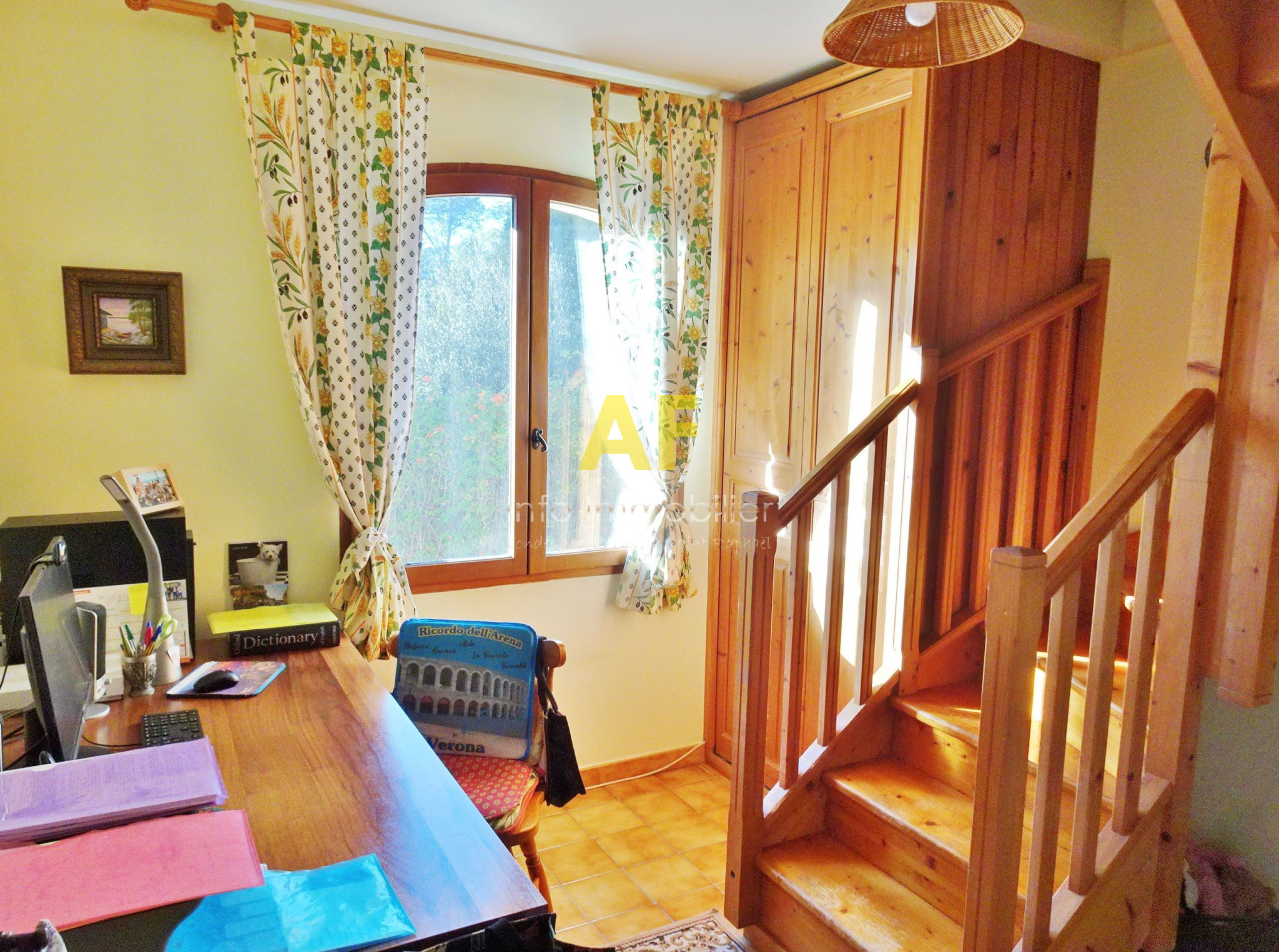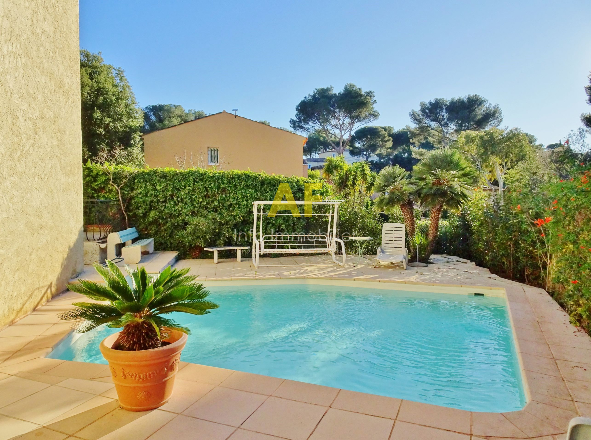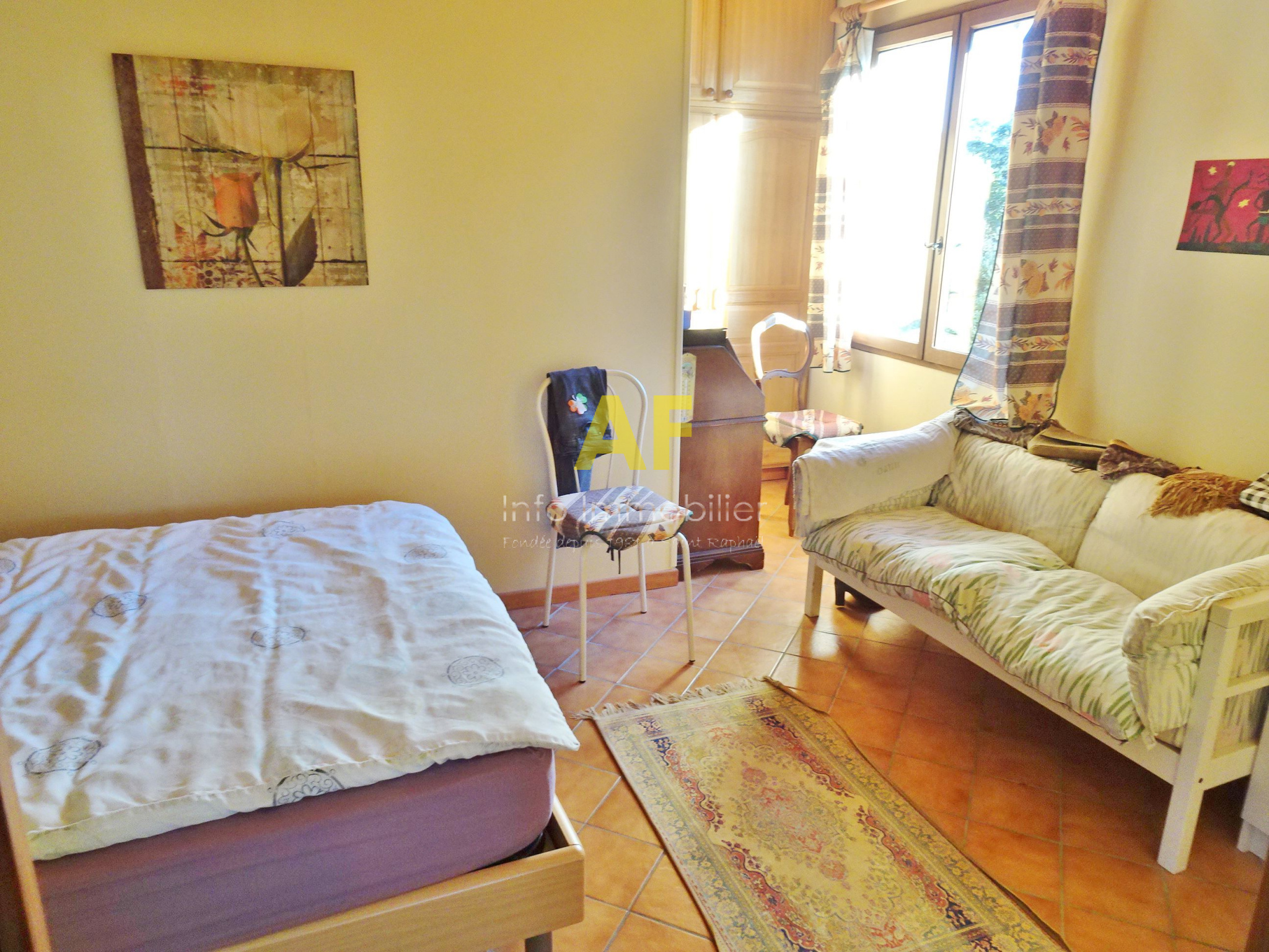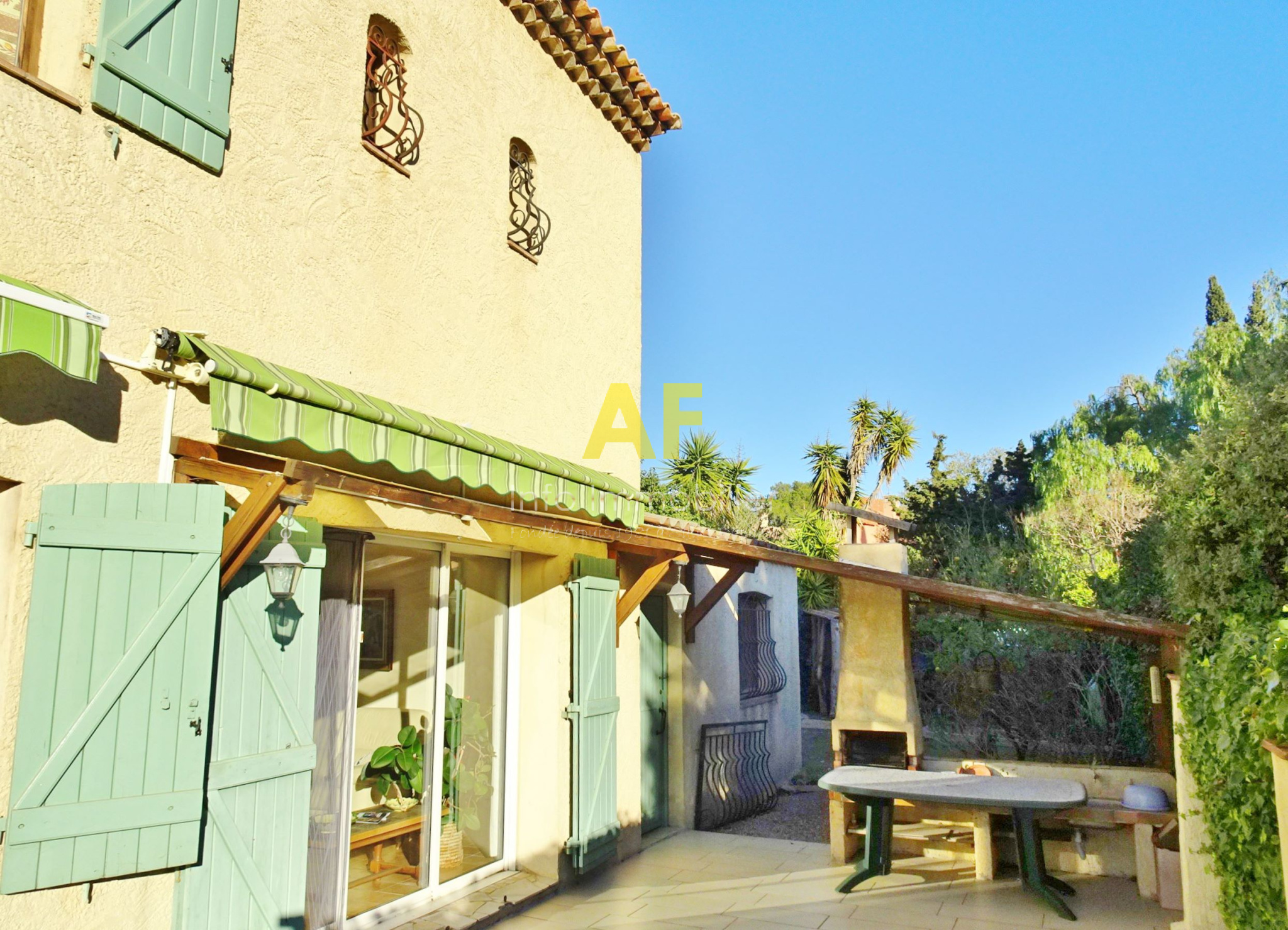 Saint-Raphaël (83700)SAINT RAPHAEL - QUARTIER DE BOULOURIS - dans quartier résidentiel calme, agréable villa provencçale de 6 pièces principale + appartement semi-indépendant de type 2 pièces. La villa est composée au rez-de-chaussée d'un hall d'entrée avec placard, une cuisine coin repas, un séjour-salon avec cheminée ouvrant sur une vaste terrasse dallée de 46m² exposée au Sud, un dégagement desservant 2 chambres, une salle d'eau avec wc et fenêtre, un dressing et un bureau. A l'étage ; une grande chambre ou salle de jeu, une seconde chambre, une salle d'eau avec wc et fenêtre, un dégagement/buanderie permettant aussi l'accès à un appartement de type 2 pièces semi-indépendant (avec également un accès indépendant par l'extérieur) composé d'un séjour avec cuisine américaine ouvrant sur une terrasse, une chambre, une salle d'eau avec wc et fenêtre. Le tout édifié sur une parcelle de terrain parfaitement au calme d'une superficie de 559m² avec piscine, garage et sauna. Eléments de confort : cheminée avec insert, climatisation réversible dans le séjour et une chambre à l'étage, stores électriques sur terrasse Sud.