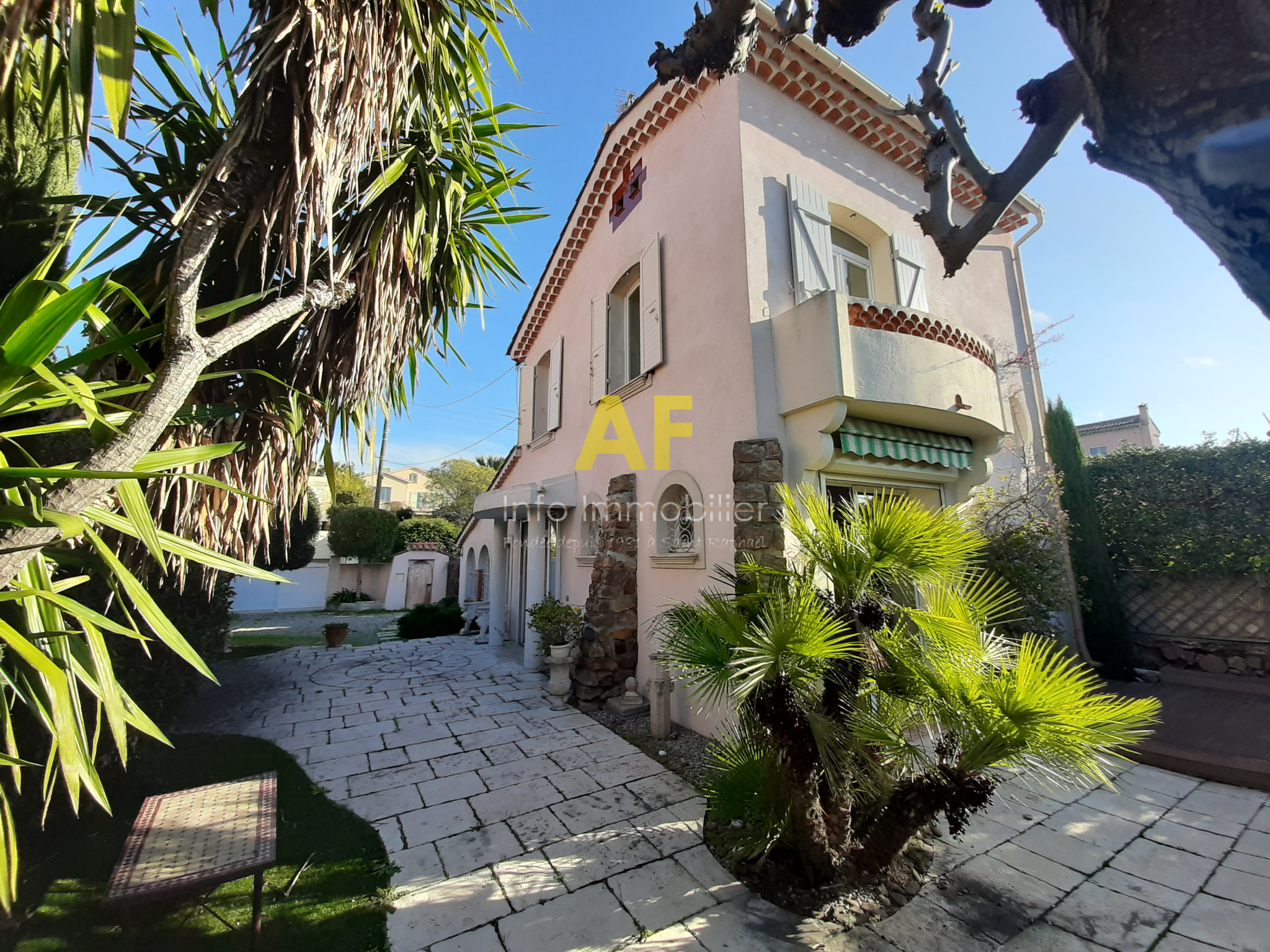 Santa Lucia. Proche du centre-ville des commerces et des plages, villa composée de: entrée, salla à manger avec cuisine américaine, aménagée et équipée, cellier, salon, suite parentale avec salle d'eau et WC, WC séparés avec lave mains. A l'étage: dégagement, 2 belles chambres, salle d'eau avec WC, balcon. Aperçu mer et belle vue mer sur le port. Charmant jardin arboré et fleuri. Parking
