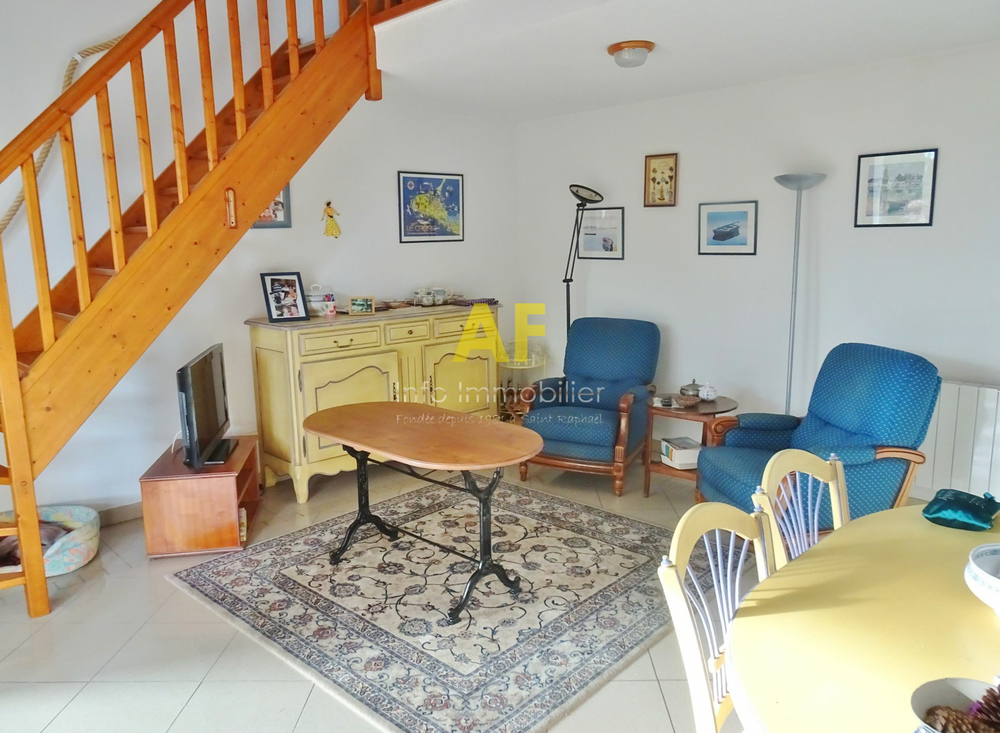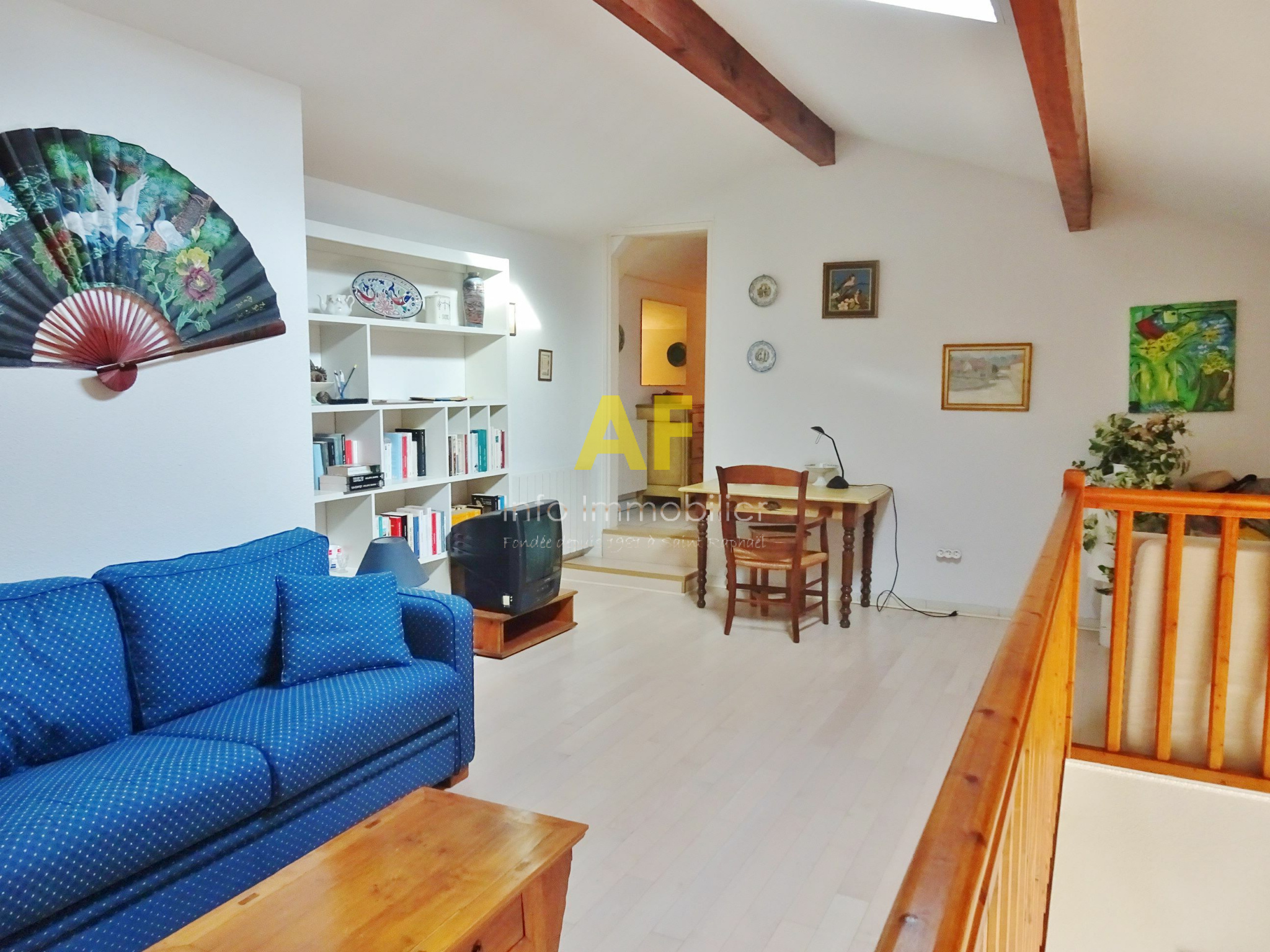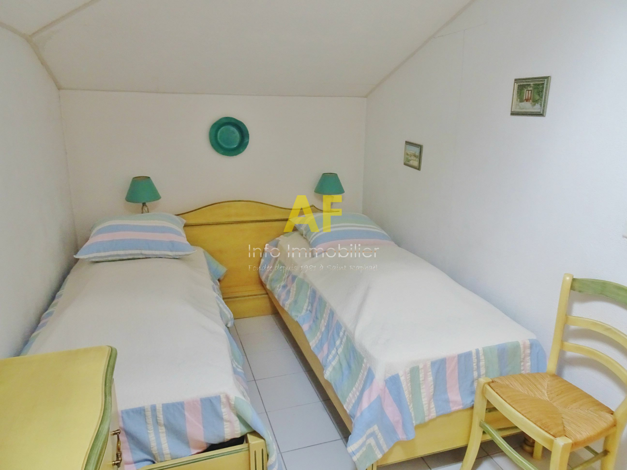Boulouris (83700)Saint Raphaël, secteur de Santa Lucia - Les Tasses, agréable appartement de type 2/3 pièces + mezzanine et terrasse - en dernier étage avec ascenseur - dans petite résidence de standing sécurisée avec très beau parc arboré et piscine. L'appartement se compose d'un hall d'entrée avec placard, un séjour ouvrant sur une agréable terrasse de 17,50m² exposée au Sud avec une jolie vue sur la verdure, cuisine semi ouvert avec un accès sur la terrasse, dégagement, une chambre avec placard ouvrant également sur la terrasse, salle de bains, wc séparés. A l'étage, vaste mezzanine 22m² avec coin lecture et TV, coin nuit, salle d'eau avec wc. Un garage en sous-sol avec une porte automatique est également vendu avec l'appartement. Copropriété composée de 96 lots (y compris stationnements et caves) dont seulement 29 lots principaux d'habitation répartis sur deux petits bâtiments. Charges courantes annuelles : 2093 €. Taxe Foncière : 967 €
