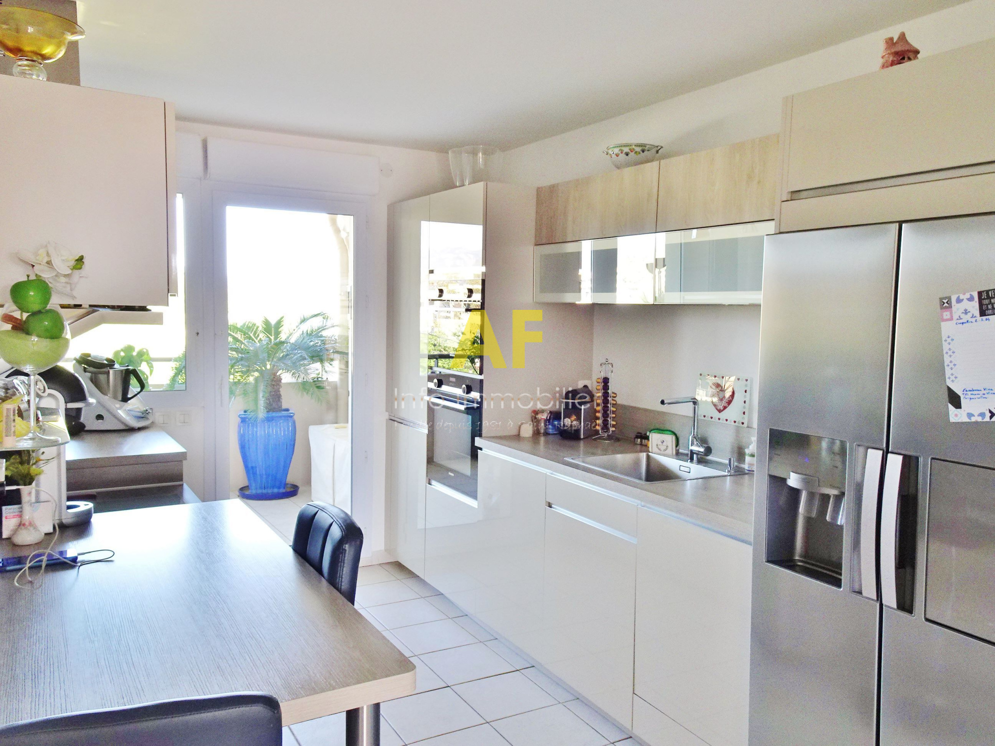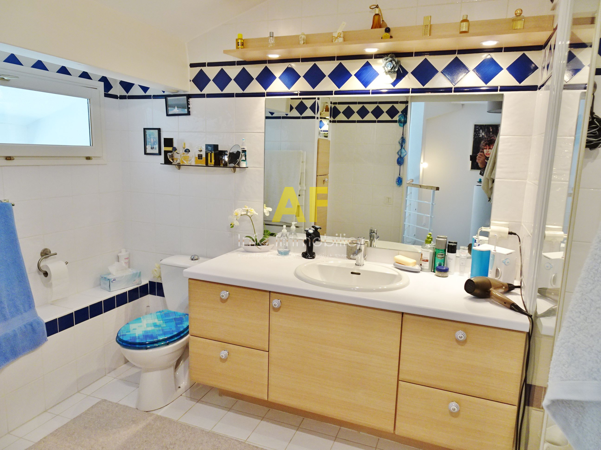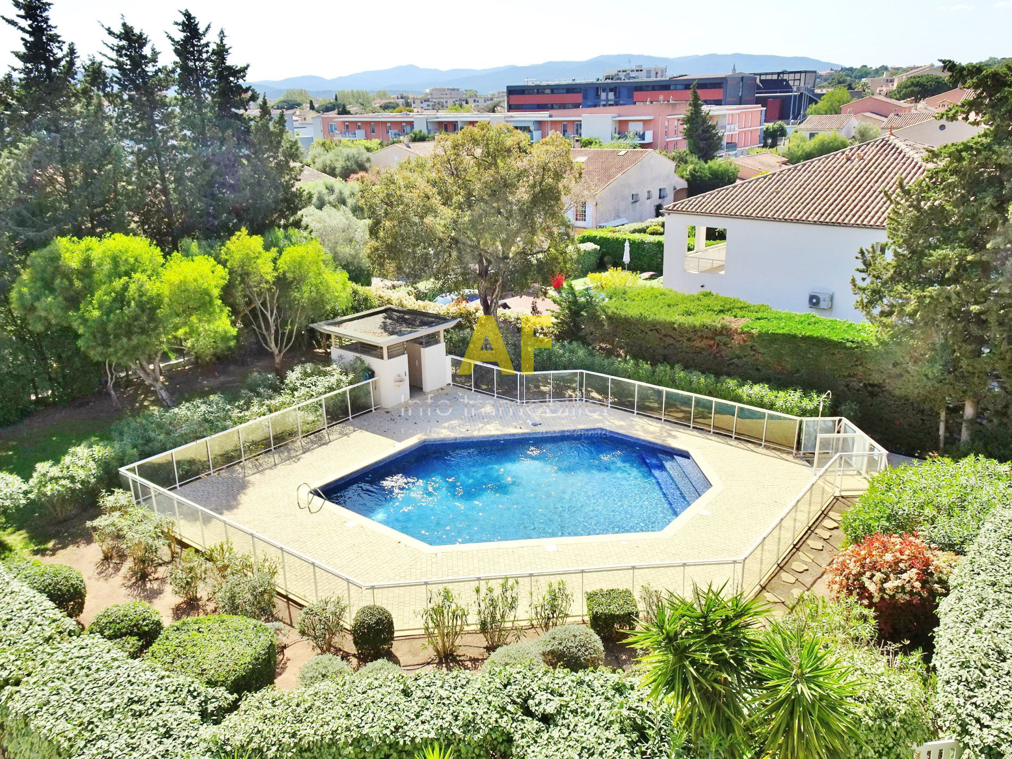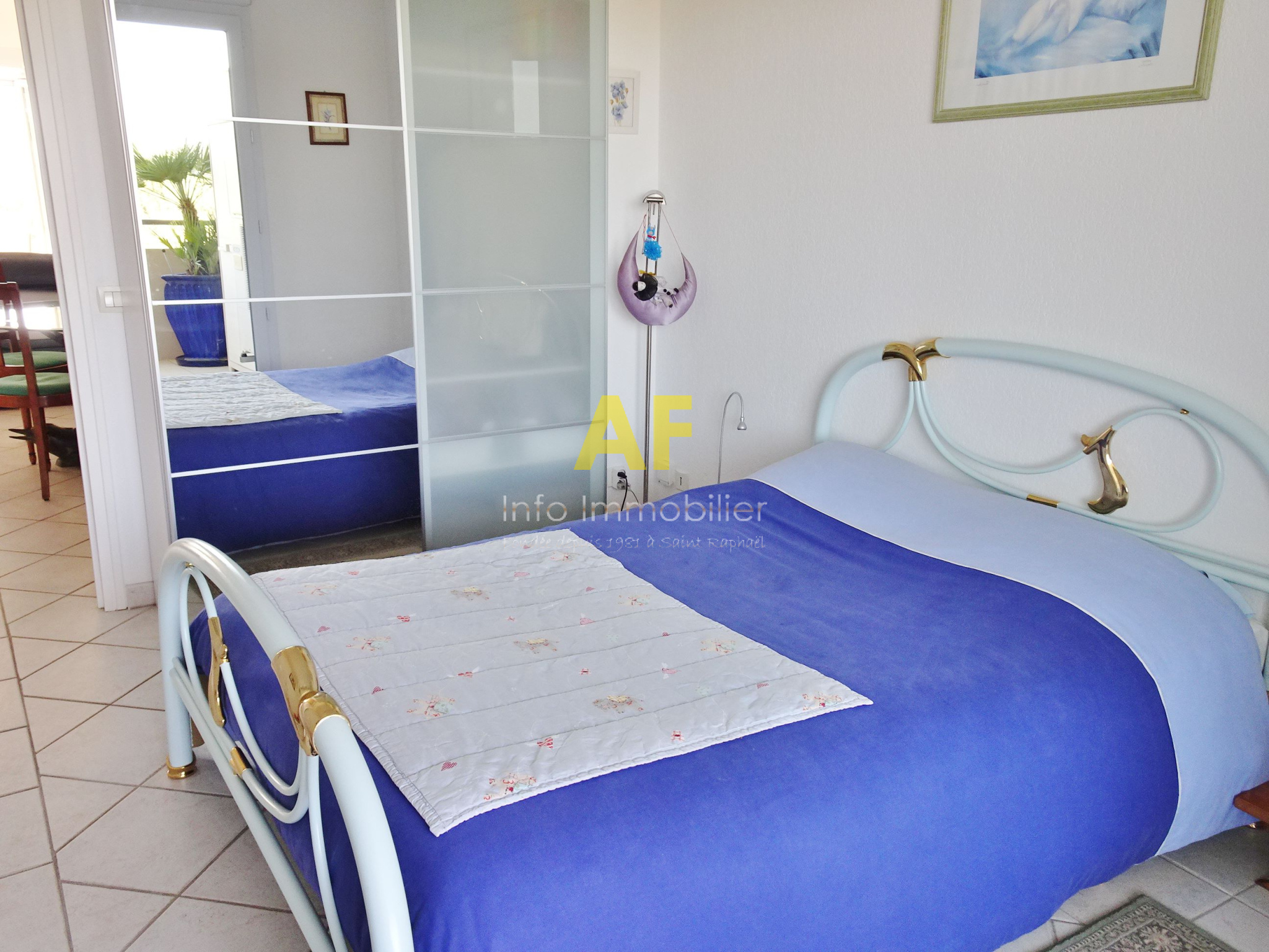 Fréjus (83600)FREJUS limite Saint Raphaël, dans petite résidence de standing sécurisée avec de beaux espaces verts et une piscine, très agréable appartement traversant de type 3/4 pièces 103m² - en dernier étage avec ascenseur - avec deux belles terrasses et une jolie vue dégagée. Cet appartement, en parfait état, se compose d'une entrée avec une salle d'eau et wc, un vaste séjour-salon de 40m² avec hauts plafonds ouvrant sur une confortable terrasse suivie, une cuisine récente entièrement aménagée et équipée de qualité, une chambre ouvrant également sur terrasse. Par un escalier intérieur accès à un bureau en mezzanine ainsi qu'à une vaste chambre parentale suivie d'un confortable dressing et d'une salle d'eau attenante avec wc. Climatisation réversible dans toutes les pièces, volets roulants et store électriques sur terrasse, porte blindée, vidéophone. Le tout situé dans une petite résidence fraichement ravalée avec piscine et pool house. Un emplacement de parking privatif dans l'enceinte de la résidence ainsi qu'un garage sont inclus dans le prix de vente. Copropriété composée de 90 lots (y compris parkings et garages) dont seulement 38 lots principaux d'habitation, Charges courantes annuelles : 2580 €