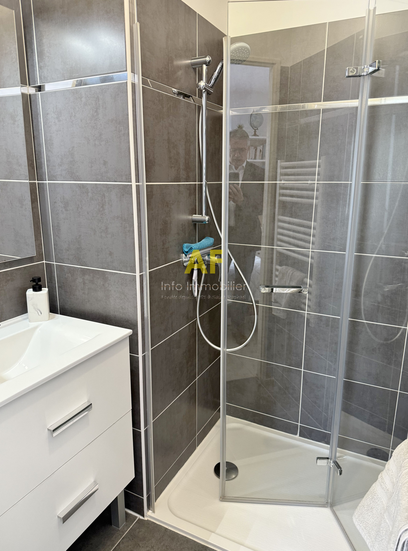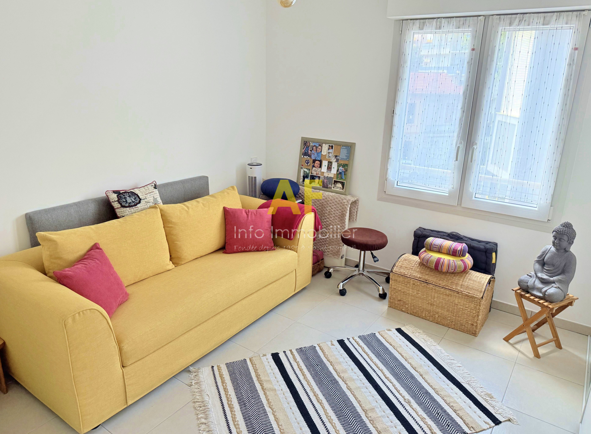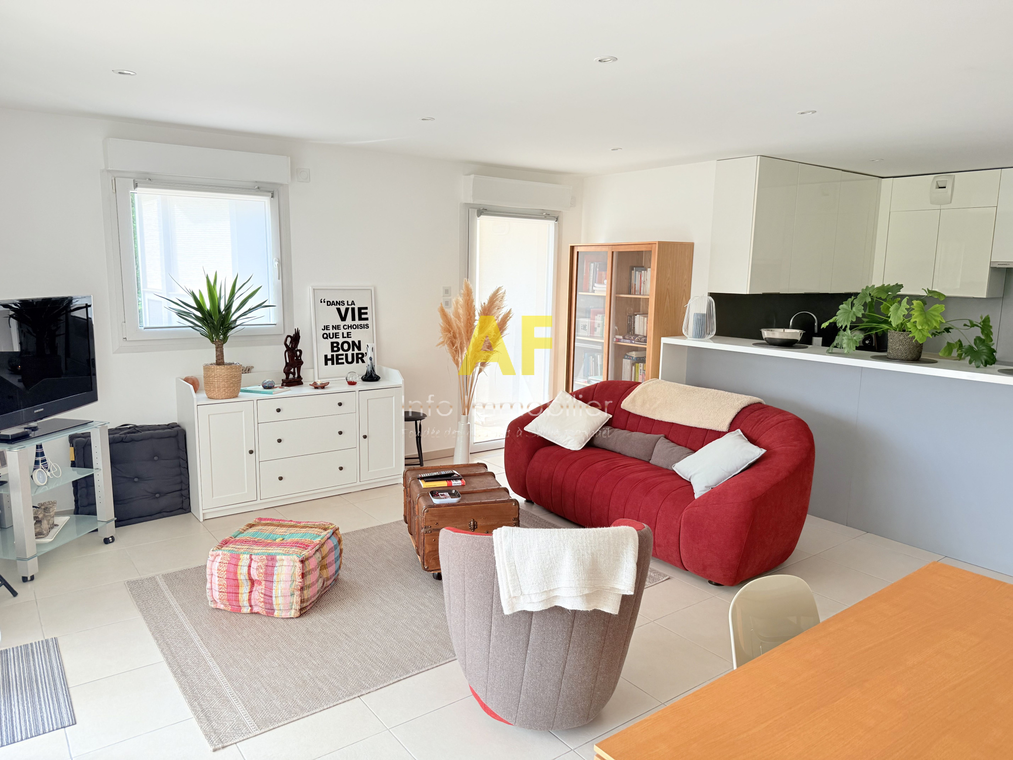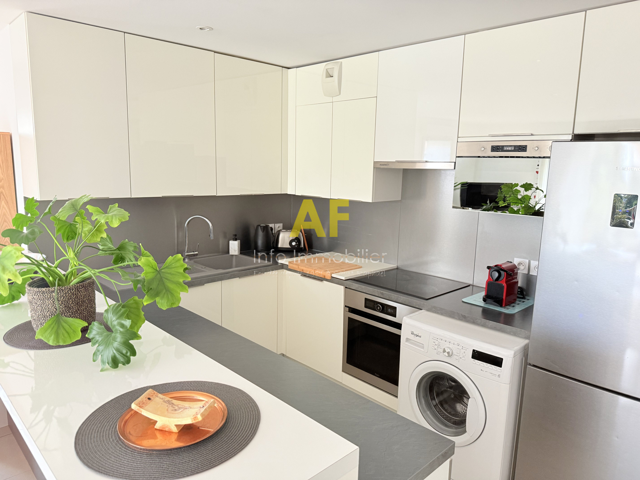 Fréjus (83600)Fréjus, limite Saint Raphaël, à seulement 400m des plages et des premiers commerces à pied, confortable appartement 3 pièces 74m² avec terrasse expo Sud, le tout en parfait état et aménagé avec goût. Ce logement aux prestations de standing se compose d'un hall d'entrée avec placard, un wc invité avec lave mains, un séjour salle à manger ouvrant sur terrasse avec jolie cuisine américaine aménagée et équipée, un dégagement avec placards desservant une chambre principale de 12m² avec placard et salle de bains attenante avec wc, une seconde chambre avec sa salle d'eau attenante. Cet appartement bénéficie également d'un système de climatisaion réversible dans chaque pièce de vie ainsi que de volets roulants et d'un store électrique sur terrasse. La résidence sécurisée, récente et très bien entretenue satisfait les dernières normes thermiques et phoniques en vigueur. 2 places de parking privatifs sont également vendues avec l'appartement et sont incluses dans le prix de vente. Copropriété composée de 28 lots (y compris stationnements) dont seulement 10 lots principaux d'habitation. Charges courantes annuelles : 1665 €
