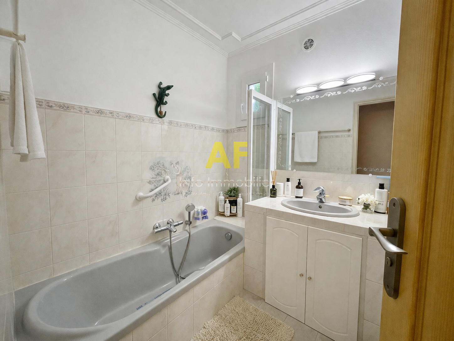 À l’extérieur, vous serez immédiatement séduit par son jardin d’environ 400 m², très fleuri et arboré, sans vis-à-vis, créant une atmosphère paisible et intimiste. Une terrasse avec pergola, un beau jacuzzi récent et une vue dégagée sur le massif de l’Estérel complètent cet espace de vie agréable.