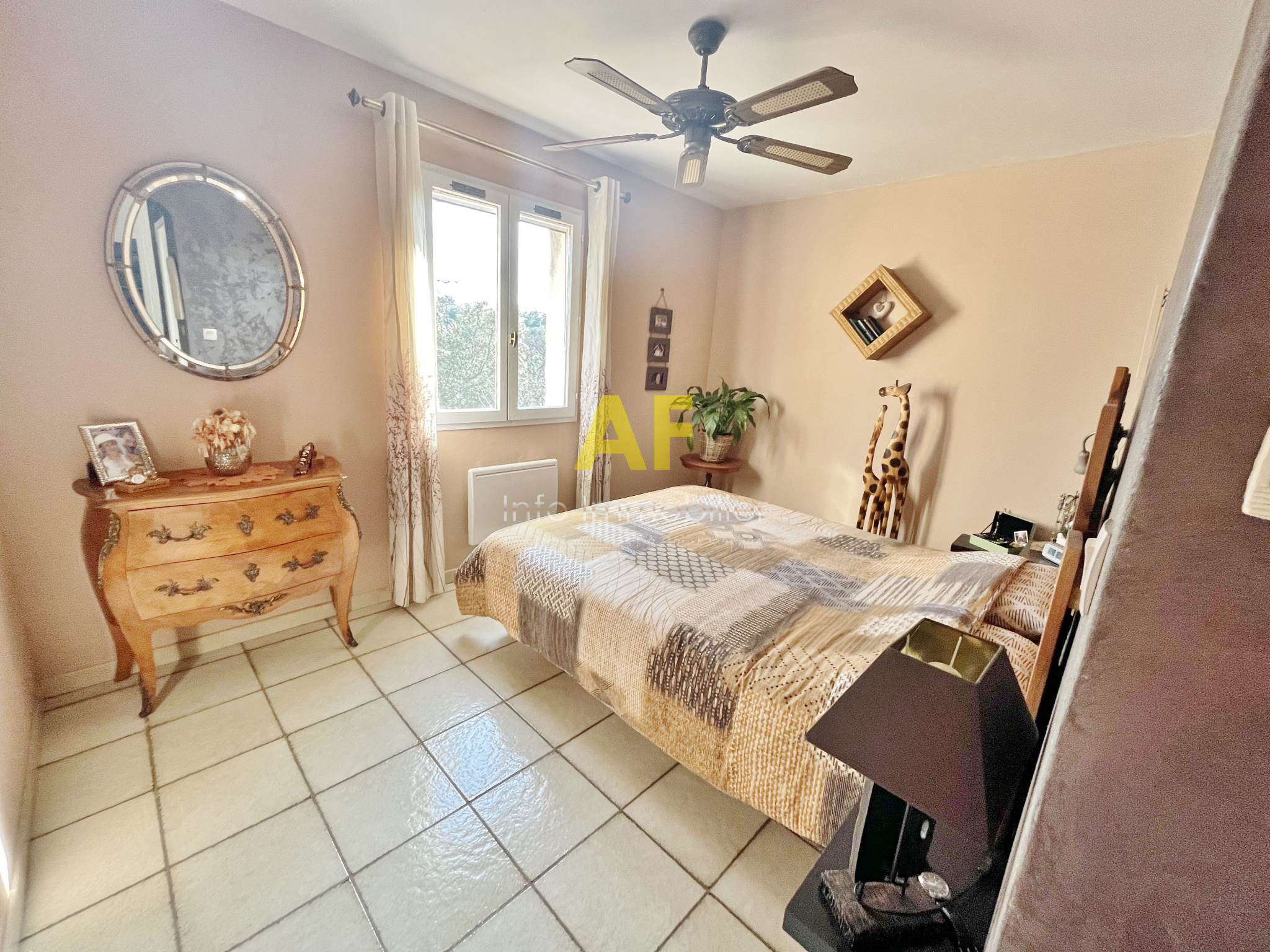 Cette villa de 123m² habitable est composée comme suit : au rez-de-chaussée, une entrée desservant une cuisine semi ouverte avec buanderie attenante, un séjour avec cheminée à insert bénéficiant d’une belle luminosité ouvert sur une terrasse exposée plein sud de 34m², toilettes invitées, une chambre aménagée en bureau avec grand placard, 2 chambres avec placard et très belle hauteur sous plafond, salle d’eau. A l’étage un espace parental avec une chambre faisant office de très grand dressing, un dégagement, une salle d’eau avec WC et une chambre avec vue sur la pinède. Montant moyen de la quote-part de charges courantes annuelles du lotissement : 300 €.