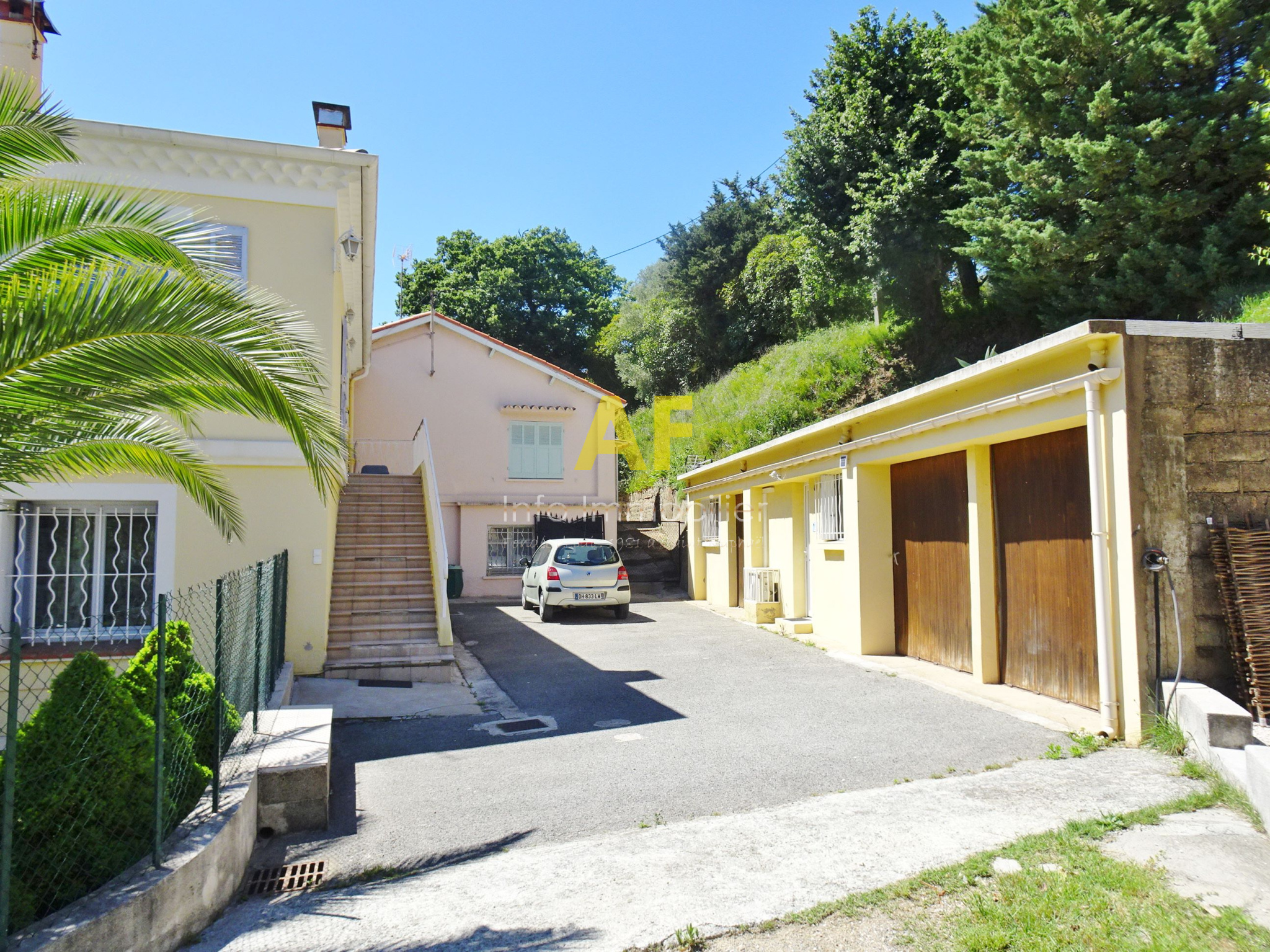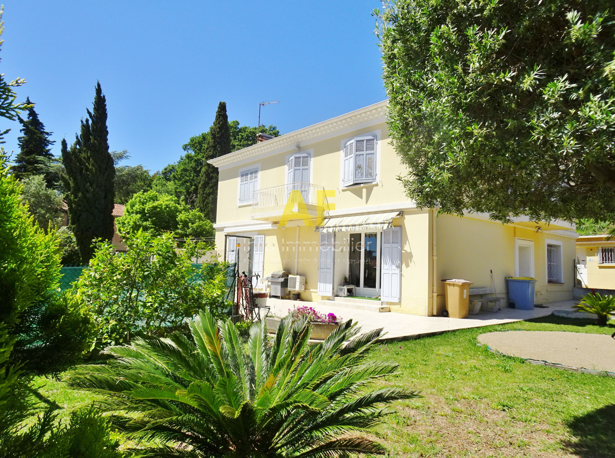 Fréjus (83600)FREJUS, quartier Hôpital, dans une impasse parfaitement au calme et dans un cadre de verdure, agréable villa 208m² actuellement composée de 3 appartements sur 1069m² de jardin clos. La maison se compose au rez-de-chaussée d'un appartements de type 4 pièces d'environ 100m² bénéficiant d'un séjour-salon avec jolie cuisine américaine équipée ouvrant sur une grande terrasse exposition Sud, 3 chambres avec placard, une salle d'eau avec wc et un wc séparé. L'étage est composé de 2 appartements : - un appartement de type 3 pièces composé d'un hall d'entrée avec placards, une cuisine aménagée ouvrant sur le séjour et un balcon, 2 chambres, une salle d'eau et un wc séparé. - un appartement de type 2 pièces composé : d'un hall d'entrée avec cellier, une cuisine avec coin repas, un séjour ou une grande chambre, une salle d'eau et un wc séparé. Le tout est en très bon état général et habitable sans travaux. Menuiseries extérieures double vitrage. 4 garages ainsi que des places de parkings complètent ce bien à vendre. Proximité premiers commerces, collège, et hôpital à pieds. Idéal pour grande famille ou placement locatif sans charges de copropriéte ou mixte entre habitation principale au rez-de-chaussée et rapport locatif complémentaire pour l'étage. Le montant de la taxe foncière s'élève à 2 472 € / an.