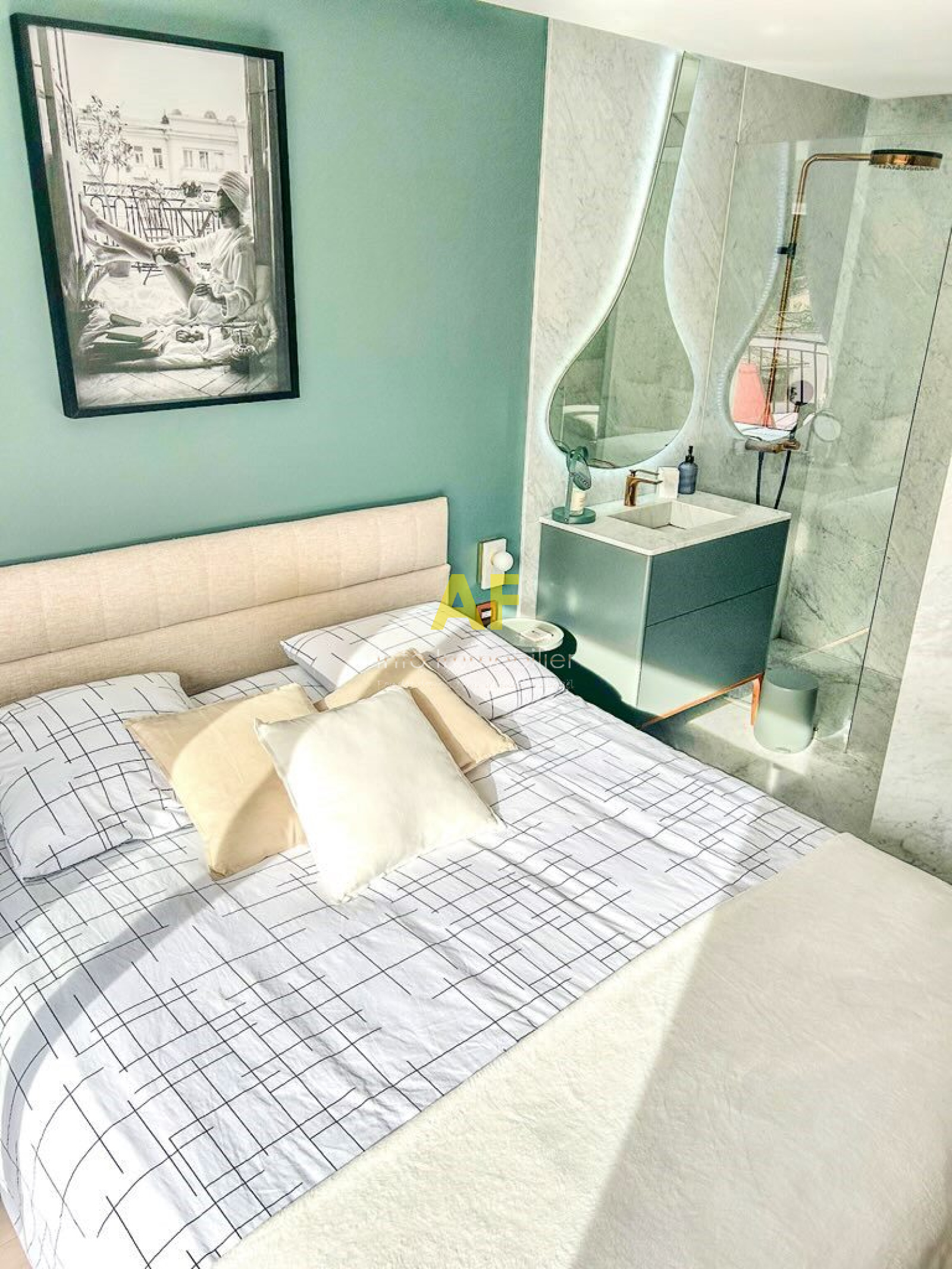 - Une chambre avec salle d’eau attenante et nombreux rangements intégrés