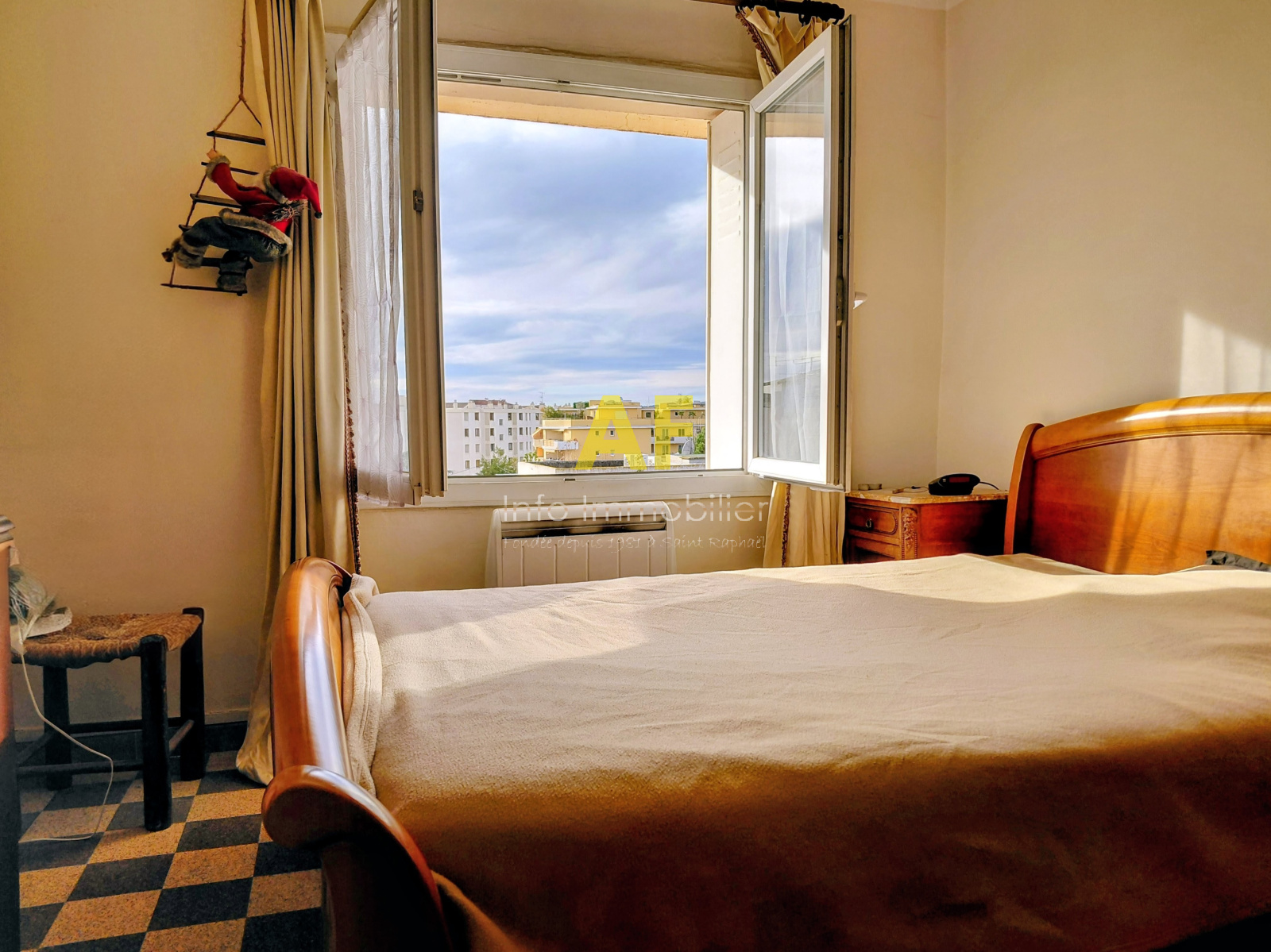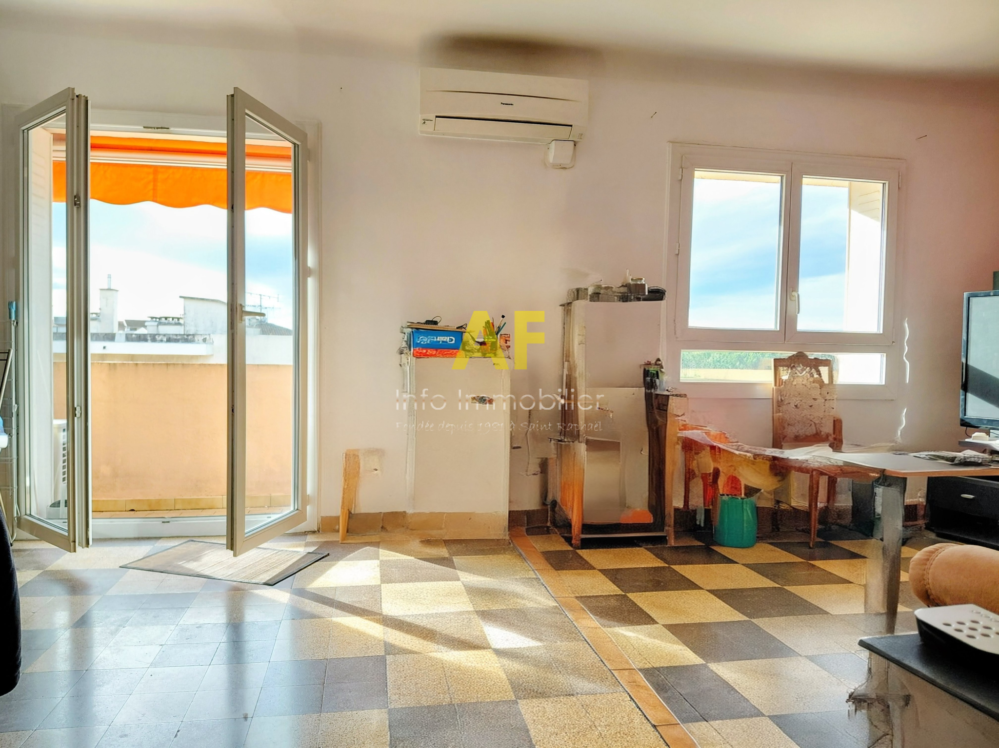 Saint-Raphaël (83700)Découvrez cet appartement lumineux de type 3/4 pièces, situé au 4è et dernier étage d'un immeuble des années 60 sans ascenseur. Avec une surface de plus de 66 m², il offre un espace de vie agréable avec un extérieur de 6m² au soleil toute l'année avec store électrique. Une entrée avec placard, un séjour double au sud, une cusine avec loggia, deux chambres, un grand dressing, une salle de bain et un WC séparé. La cuisine et la salle d'eau sont à rénover. Prestations : double vitrage, climatisation, + chaudière gaz pour l'eau chaude et radiateur électrique RAdaian en complément. Vous profiterez également d'un parking au sein de la résidence et d'une cave privative. Idéalement situé, ce bien conviendra parfaitement à une famille ou à un investisseur à la recherche d'un bien à fort potentiel. Copropriété de 45 lots dont 20 lots pricnipaux d'habitation. Taxe foncière 990€. Charges mensuelles 55€.