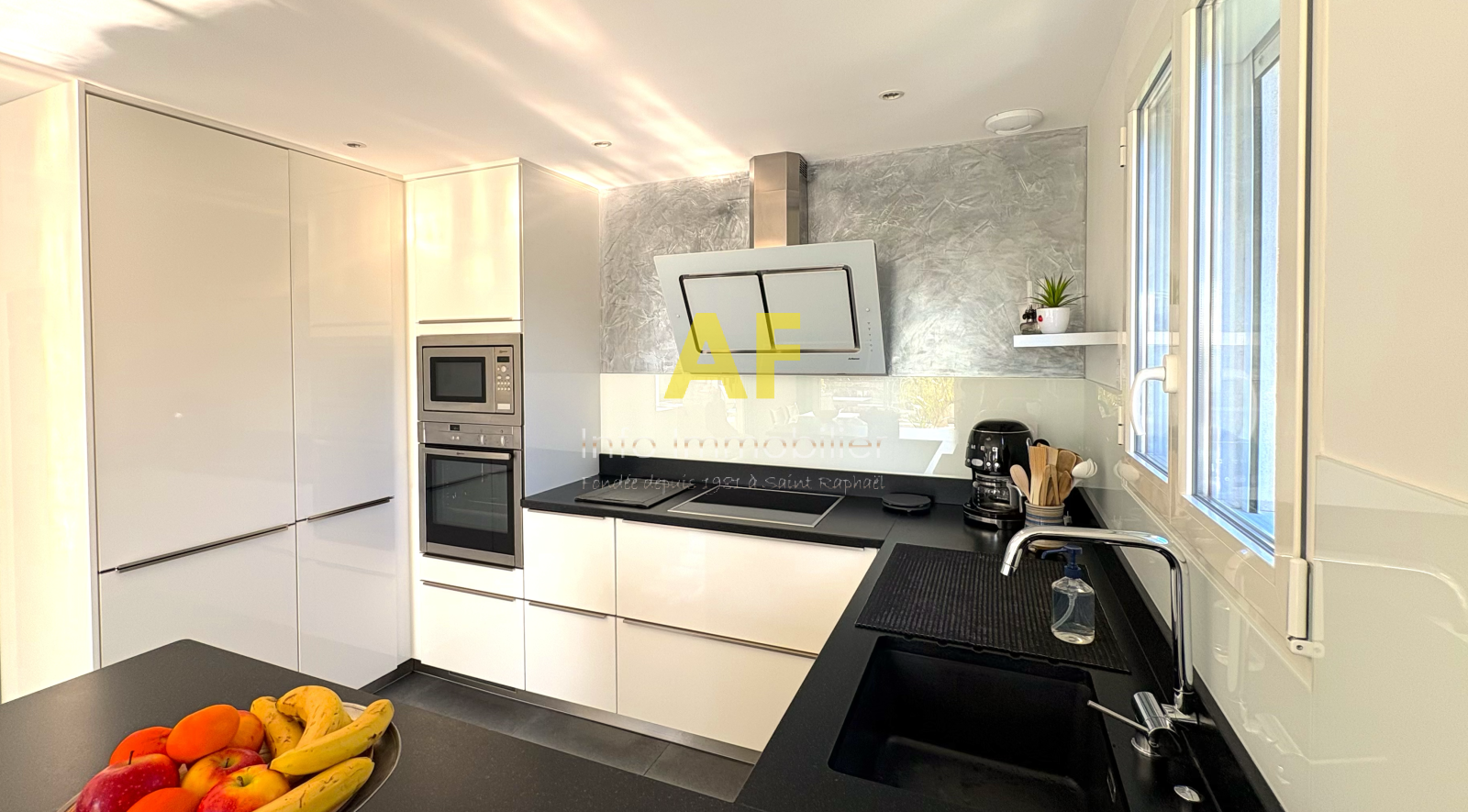 Saint-Raphaël (83530)Somptueux appartement de 95 m² au coeur de BOULOURIS, au premier ET DERNIER étage d'une résidence de standing avec ascenseur. Découvrez une superbe vue mer, un toit terrasse de 110 m² et une terrasse de plain-pied de 32 m². Une pièce de vie de 41m² ouvert plein sud sur la terrasse pour un effet "dedans-dehors" exceptioonnel. Ce bien rare offre 4 pièces dont 3 chambres, 2 salles d'eau, 2 WC, une cuisine équipée haut de gamme Schmitt avec électroménager Miele, un plan de travail en granit Bonaldi, des meubles sur mesure, carrelage italien, sanitaires Villeroy & Boch, placards Quadro, climatisation Daikin révisée, portes à galandage et faux plafonds avec 36 spots intégrés. La sécurité est assurée par une porte blindée Tordjman, alarme, détecteur de fumée, et menuiseries italiennes de grande qualité. Store électrique de 6,50 m avec éclairage. Chauffe-eau changé en 2023. Proximité immédiate des commerces (400 m), restaurants, port et plages (700 m). Garage de 17m² avec electricite et eau, parking privé. Copropriété de 4 lots principaux d'habitation et 12 lots au total. Charges courantes : 270 €/mois, taxe foncière : 2321 €/an. Construction de 2013, exposition plein sud, prestations de luxe et isolation optimale. Un bien d'exception.