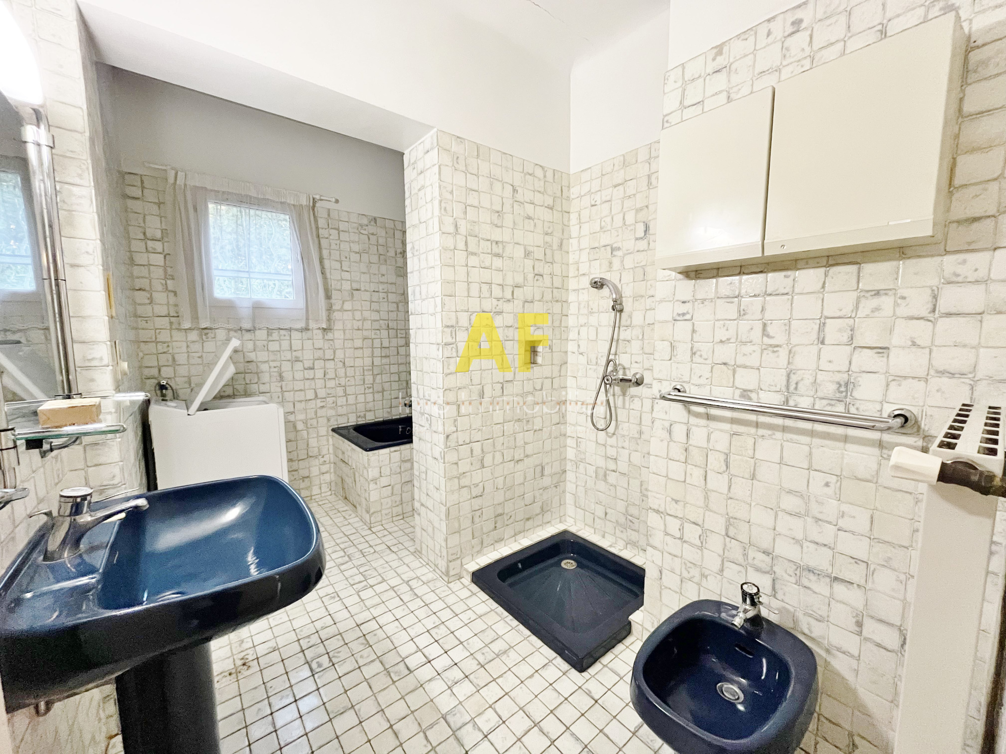 Elle dispose également d'une cuisine indépendante, de deux grandes chambres climatisées avec placard, d'une salle de bain comprenant douche et baignoire, ainsi que d'un WC séparé.