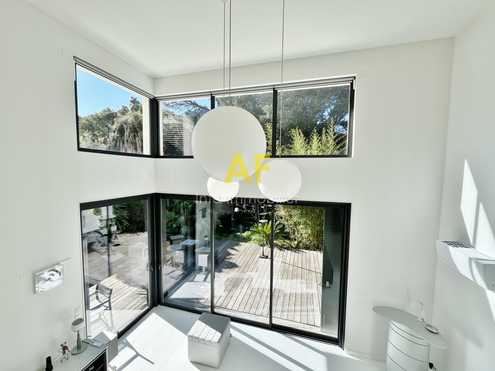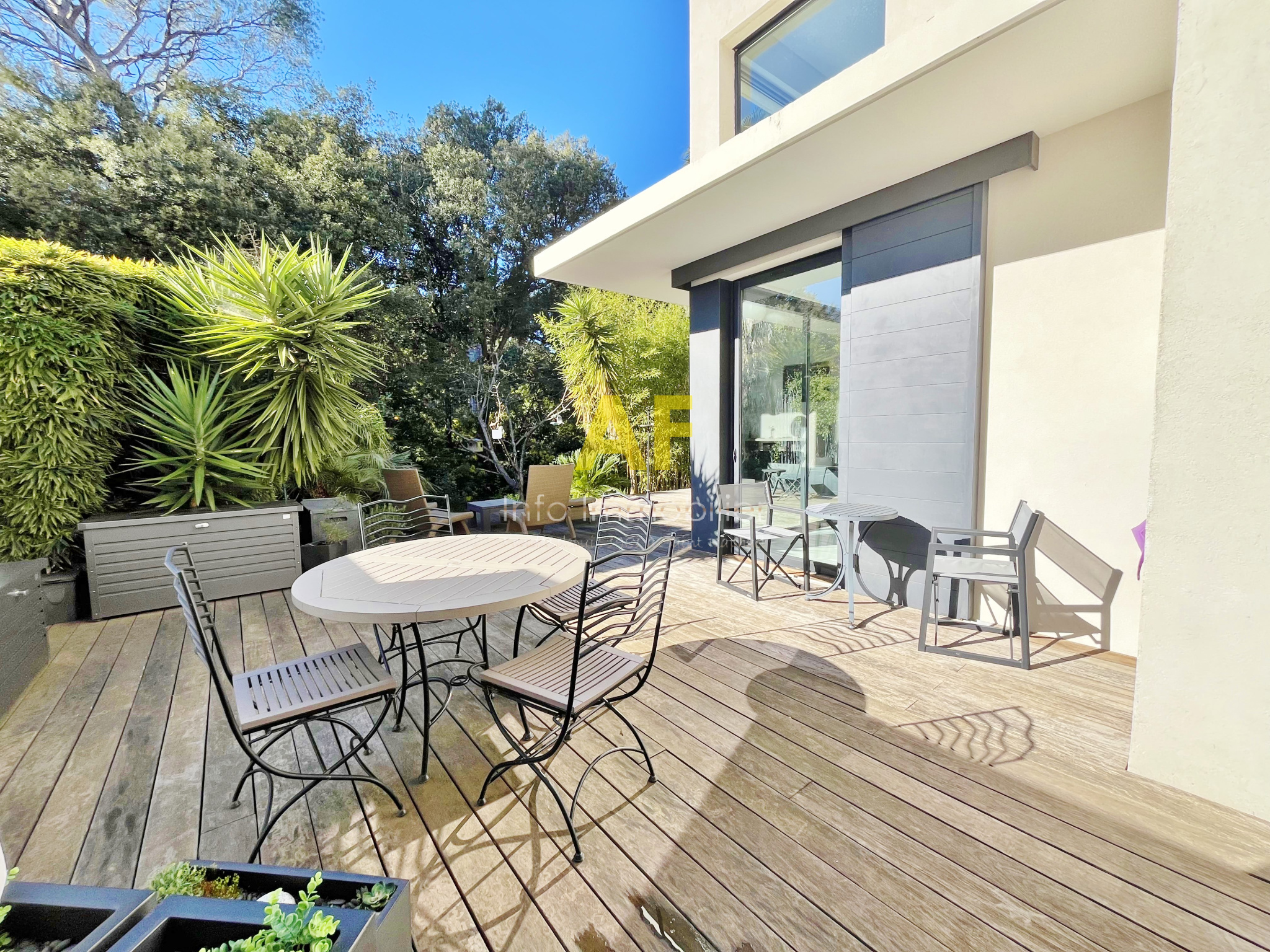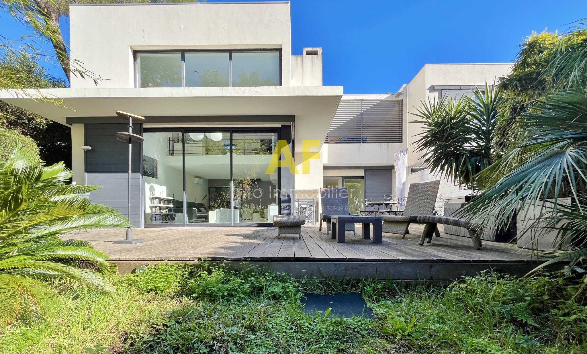 Saint-Raphaël (83700)Idéalement située dans le quartier prisé de Boulouris, à proximité immédiate des commerces, des transports et de la mer, cette maison contemporaine séduit par son architecture épurée et son cadre verdoyant exceptionnel.