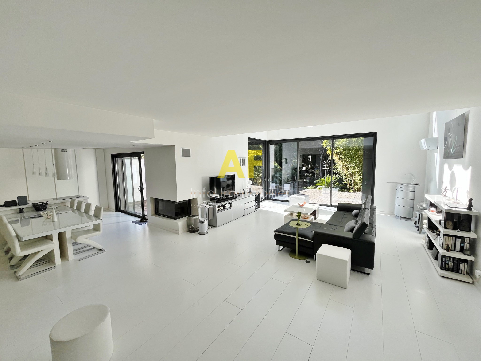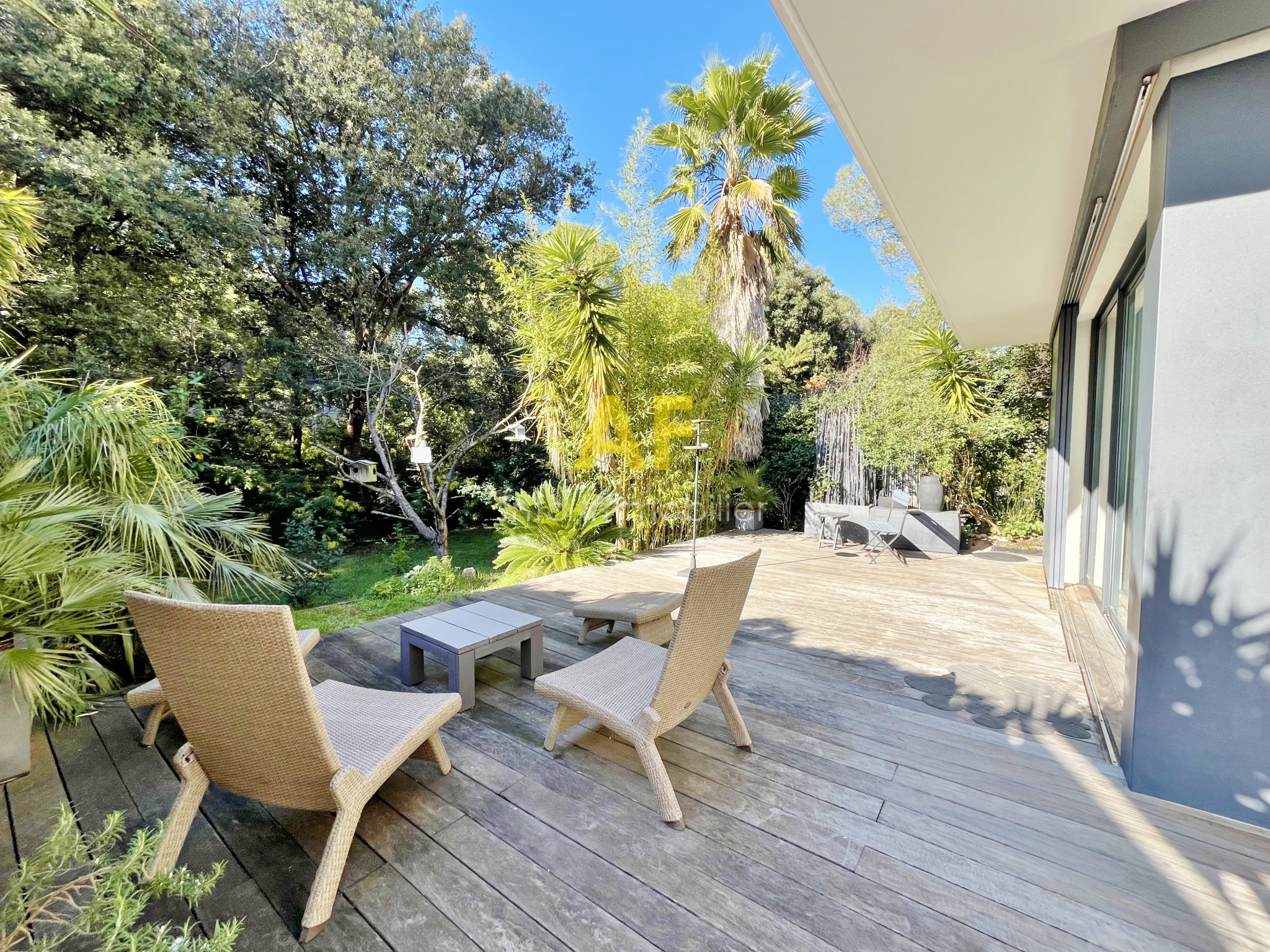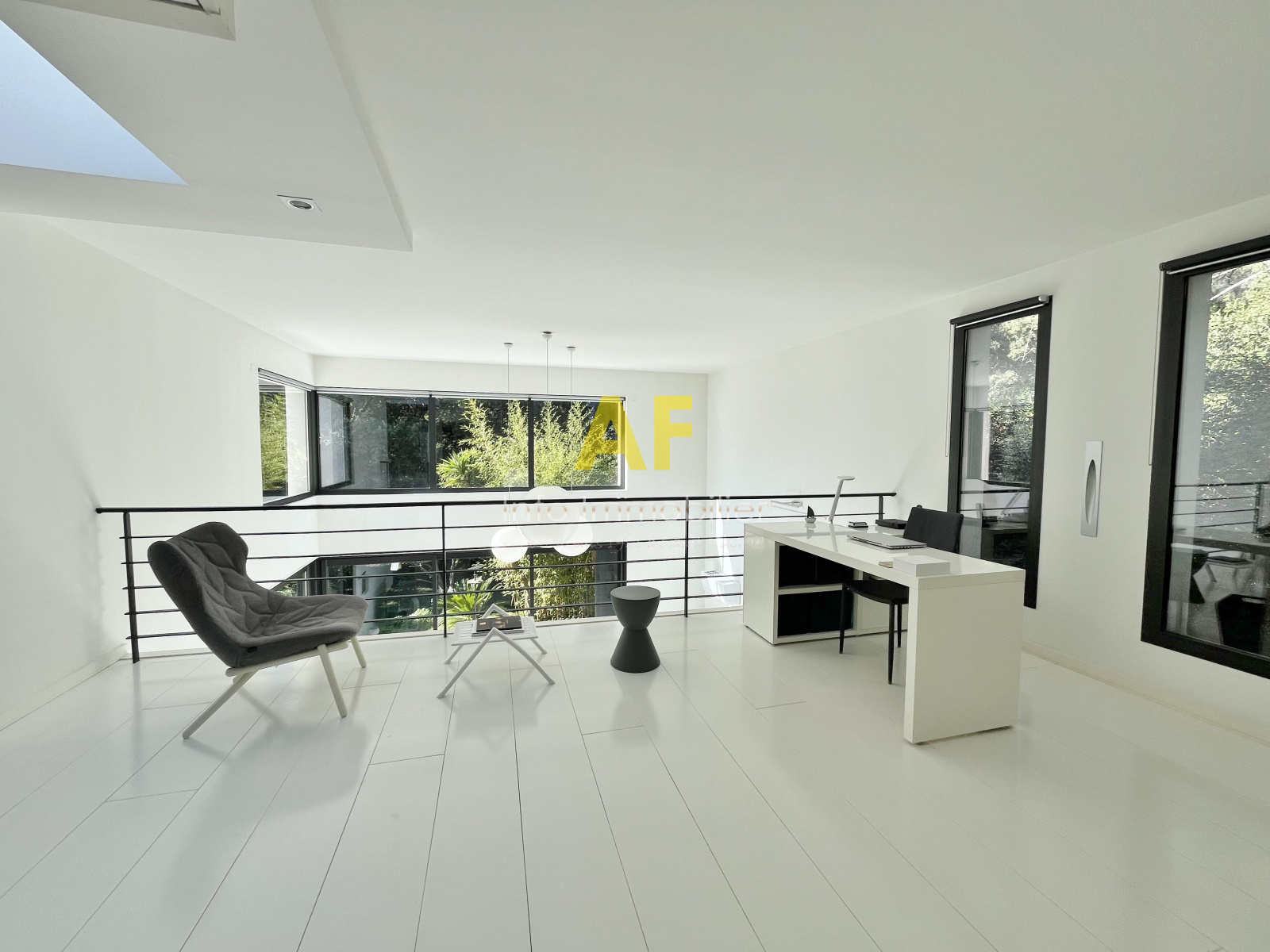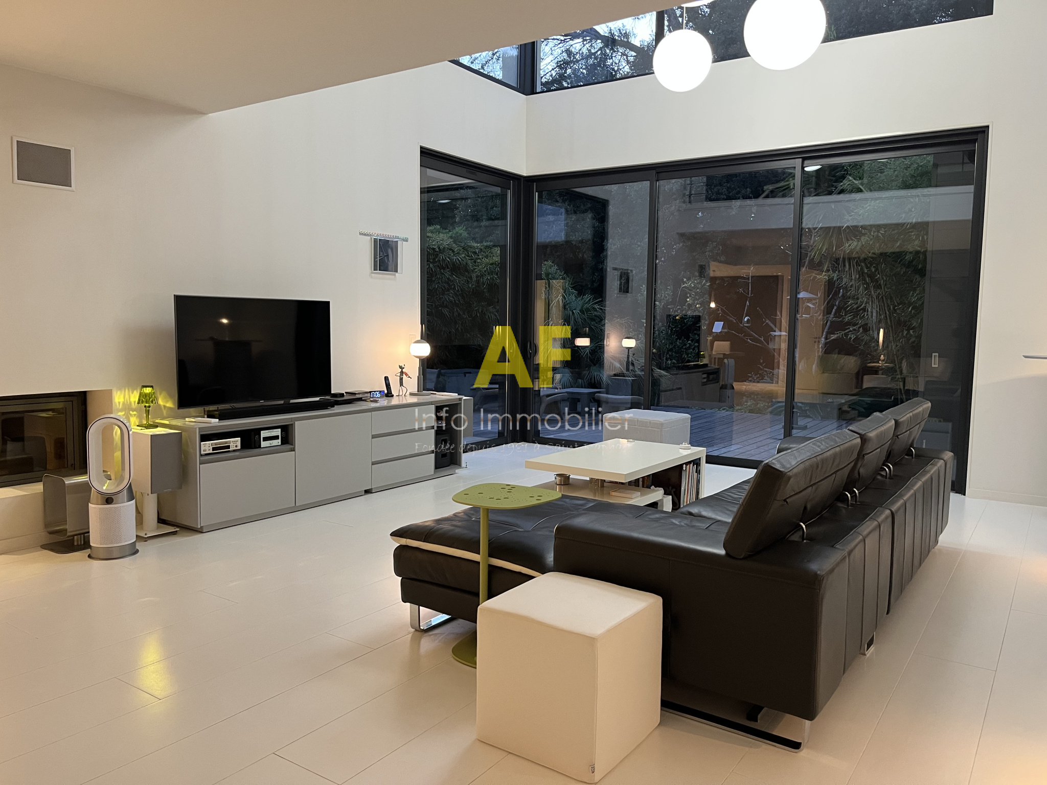 Saint-Raphaël (83700)Idéalement située dans le quartier prisé de Boulouris, à proximité immédiate des commerces, des transports et de la mer, cette maison contemporaine séduit par son architecture épurée et son cadre verdoyant exceptionnel.