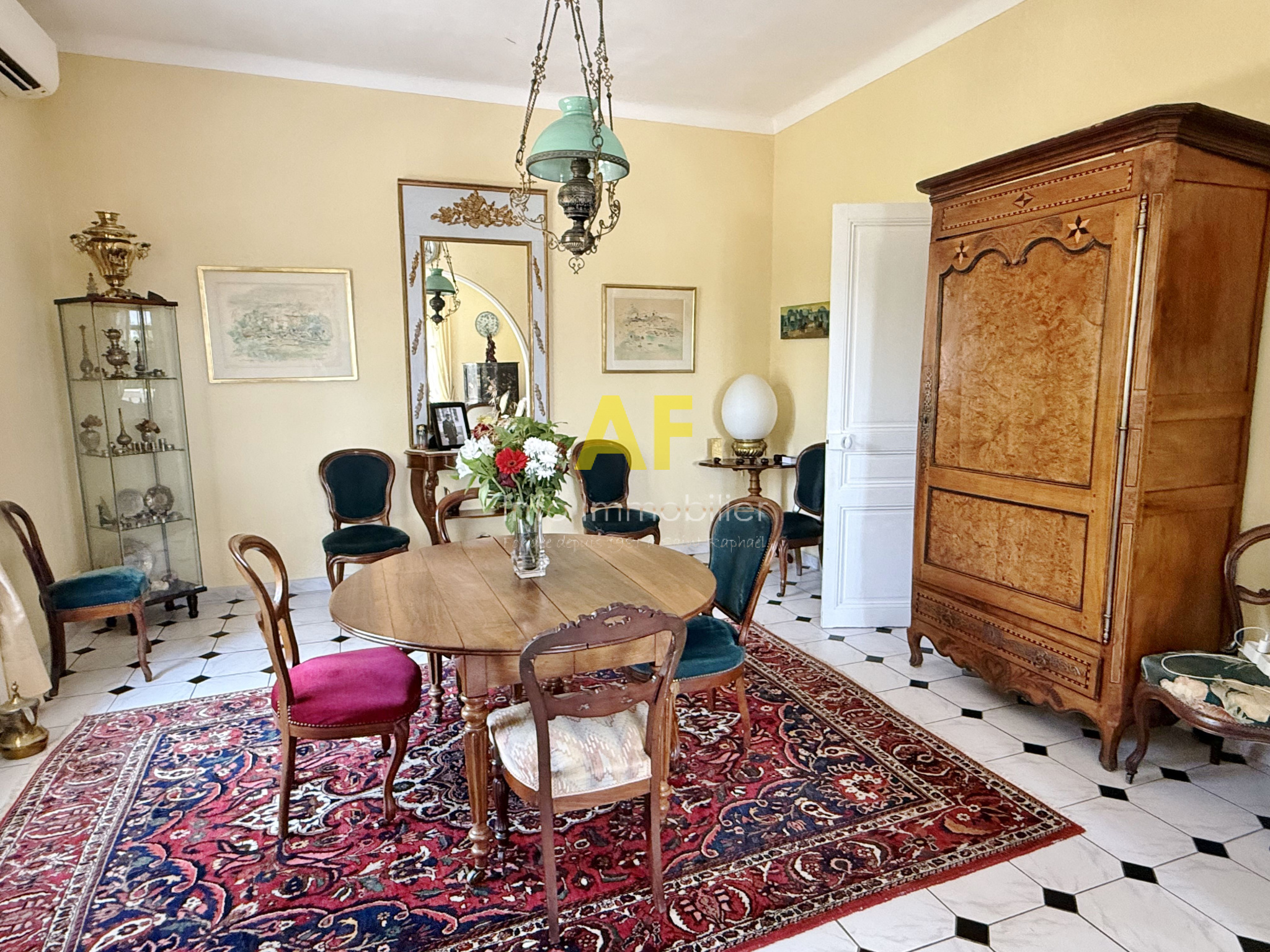 Saint-Raphaël (83700)SAINT RAPHAEL, dans quartier résidentiel proche des premiers commerces et port Santa Lucia, villa de caractère 5/6 pièces de style 1900 entièrement de plain pied 164m² sur joli terrain arboré. Cette villa se compose d'un vaste hall d'entrée, un séjour suivi d'une salle à manger de 43m² au total ouvrant sur une agréable terrasse de 25m² Expo Sud, vaste cuisine avec accès à une terrasse ombragée de 39m², 2 vastes chambres de 17m² et 19m² chacune avec leur salle se bains ou salle d'eau attenante, enfin un vaste dégagement avec avec de nombreux placards vous permettra d'accèder à deux autres chambres, une pièces à usage de buanderie ou bureau ou de chambre d'appoint, ainsi qu'à 2 wc. La majeur partie des menuiseries des pièces principales ont été changées pour des ouvrants sur mesures avec double vitrage. La maison, avec le charme de ses très belles hauteurs sous-plafonds et de ses vastes volumes dispose également d'un système de chauffage central au gaz ainsi que d'un système de climatisation réversible dans toutes les pièces principales de vie. Deux abris extérieurs de rangement ainsi qu'un garage avec porte automatique complètent la propriété. EXCLUSIVITE A VISITER RAPIDEMENT !!