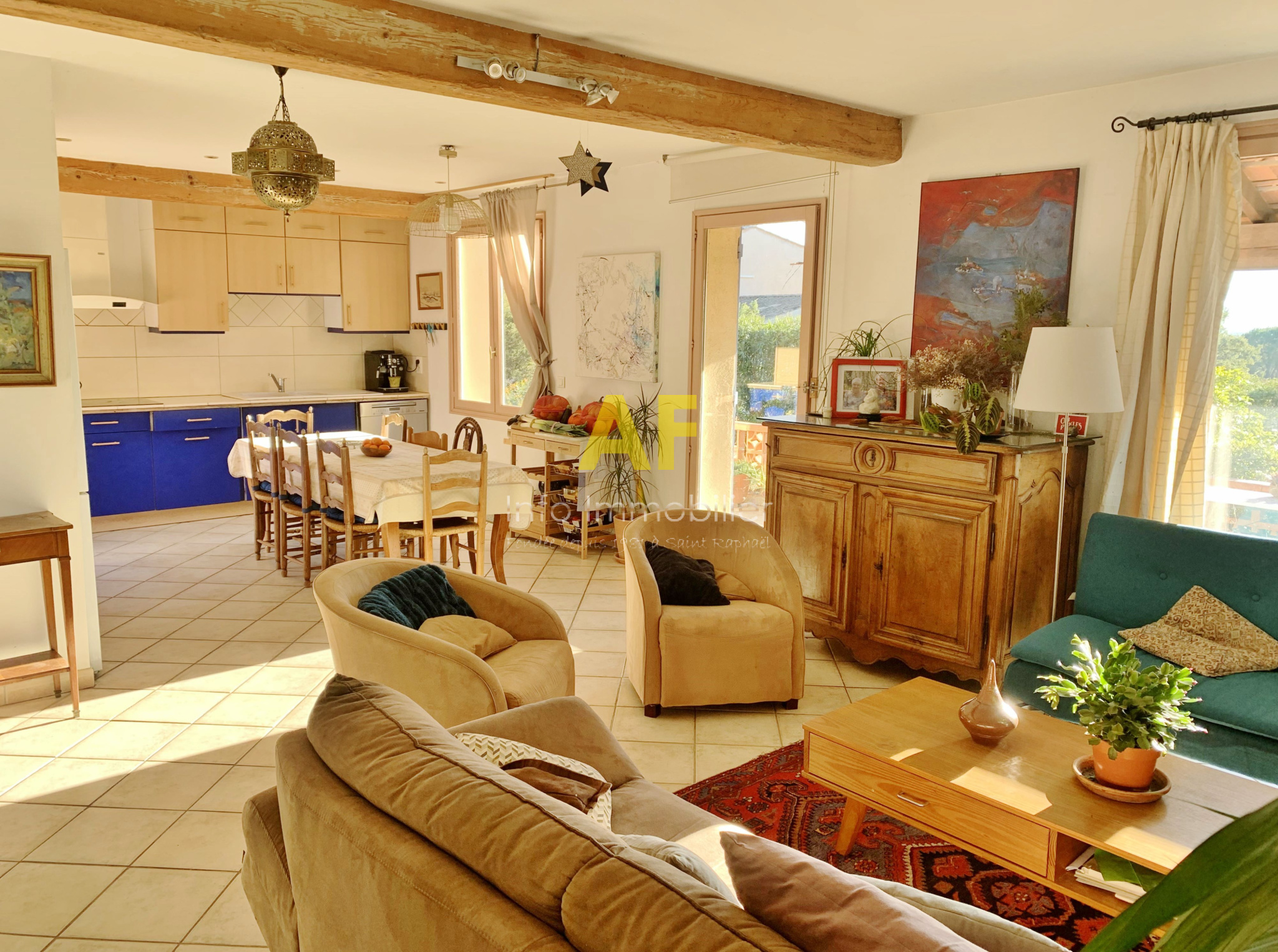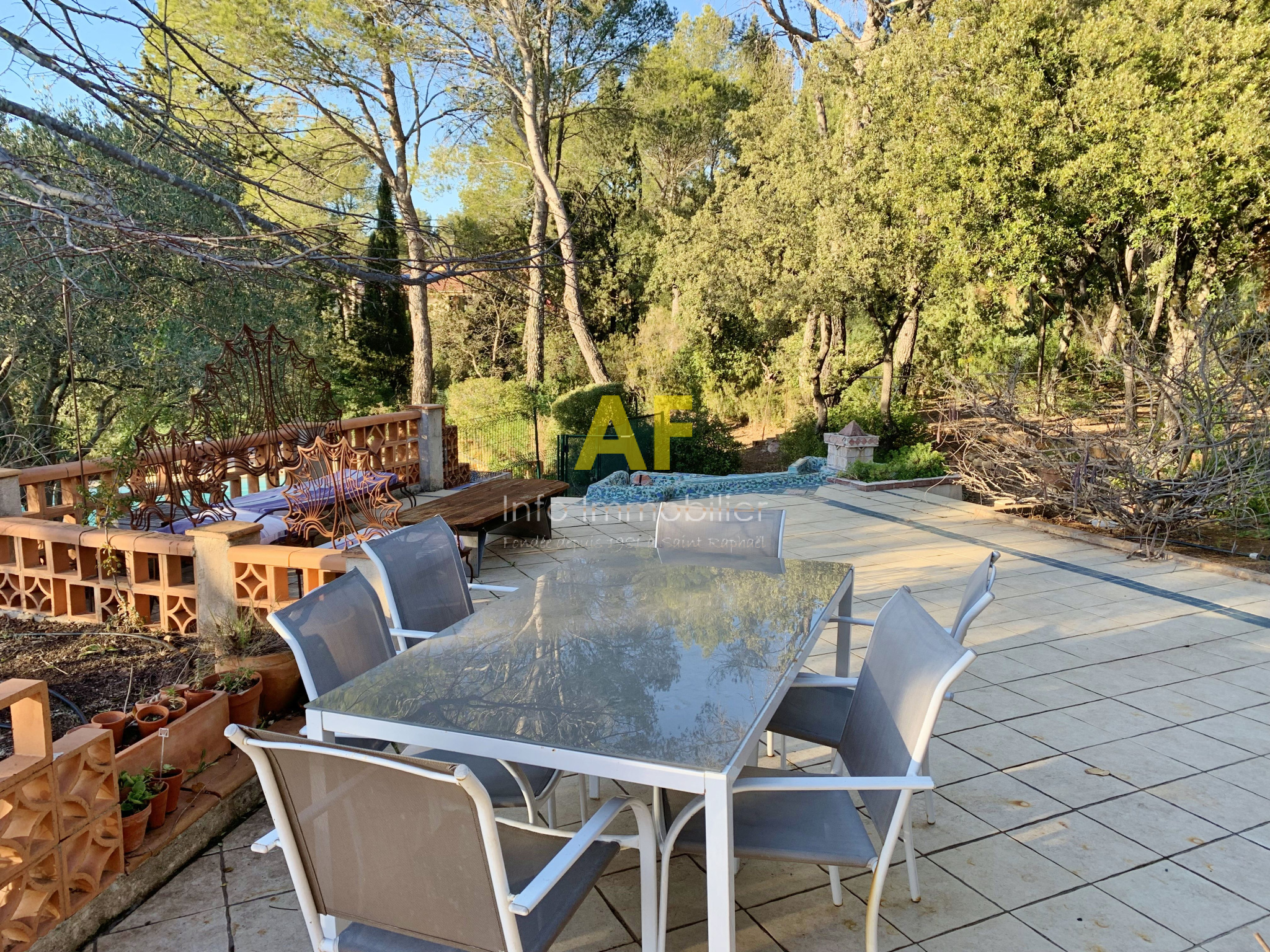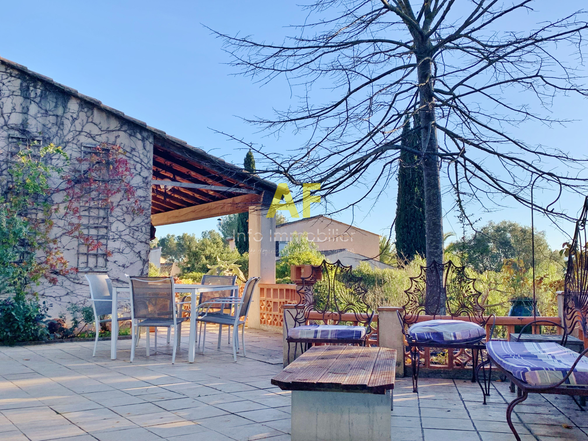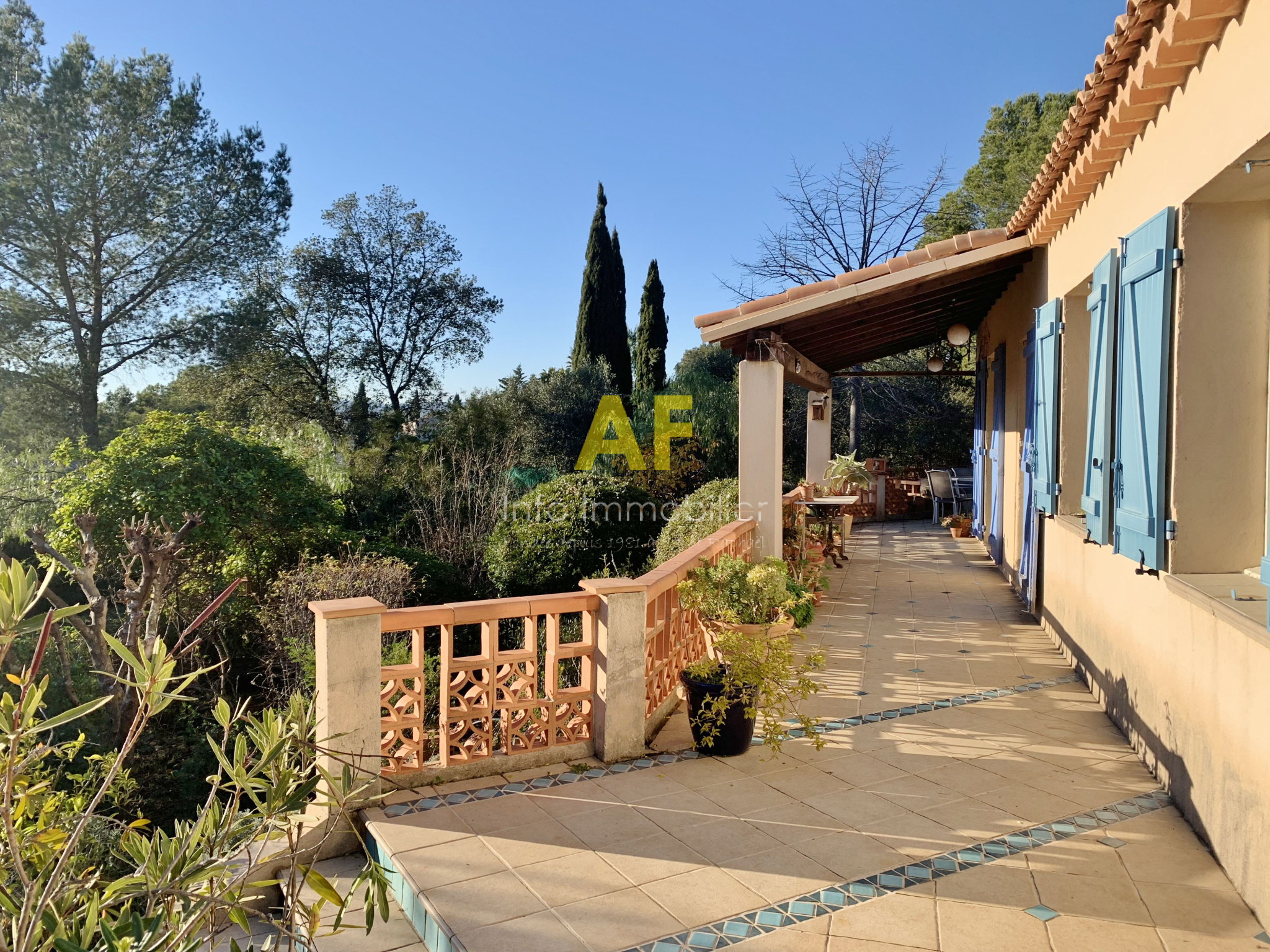 Roquebrune-sur-Argens (83520)Sur la commune de Roquebrune-Sur-Argens, déménager pour cette agréable maison provençale de plain pied de type 4 pièces principales avec une dépendance composée d'un atelier, une chambre d'appoint avec salle de bains et wc attenante. La villa se compose d'un hall d'entrée avec placard et un wc invités, un vaste séjour salon 48m² avec cheminée et cuisine américaine avec coin repas le tout ouvrant sur terrasse, dégagement permettant l'accès à 2 chambres avec placard, une salle de bains avec fenêtre, un wc, ainsi qu'à la chambre parentale de 18m² avec salle d'eau attenante et accès terrasse. Cette villa édifiée dans les années 1980 sur une parcelle de terrain de 2584m² dispose d'une piscine privative ainsi que 2 abris jardin en bois. Située en fond d'impasse, la maison est parfaitement au calme et dispose de plusieurs terrasses bénéficiant d'une superbe vue dégagée sur le Rocher de Roquebrune. Logement adapté pour une famille avec enfants ou pour une résidence secondaire dans la verdure. Proximité tous commerces de la Bouverie et accès autoroutiers. Le prix de vente est de 620 000 €. La taxe foncière s'élève à 3 116 €. L'agence AF INFO IMMOBILIER se tient à votre disposition pour tout complément d'information ou pour prévoir une visite de cette villa.